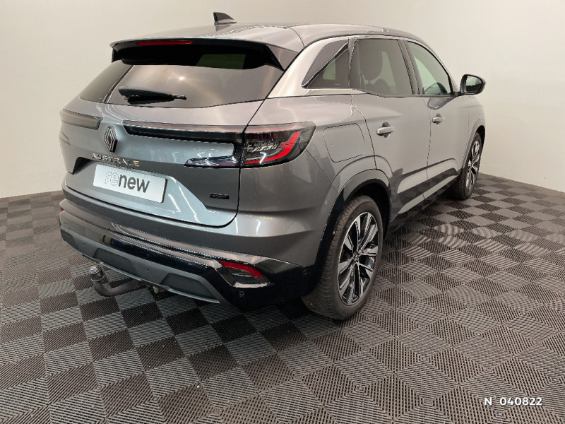 Pré-équipement alarme / Classe energetique 1 / Système Multimédia openR link 12" : navigation, services Google, audio Arkamys Auditorium / Sièges avec système ISOFIX / Classe energetique B / Notice d?utilisation digitale embarqué dans le système multimédia du véhicule / Feux AV full LED Adaptative Vision / Banquette AR coulissante 1/3-2/3 avec accoudoir central / Console centrale avec repose main coulissant / Faux plancher de coffre / Miroir de surveillance enfants / Lumière d'ambiance personnalisable / Rétroviseur intérieur électrochrome sans cadre / Peinture opaque / Aide au parking AV/AR et latéral / Commutation automatique des feux de route/croisement / Multi-sense / Carte Renault accès et démarrage mains libres / Airbags latéraux, milieu AV et rideaux / Alerte de distance de sécurité / Freinage actif d'urgence urbain (piéton + cycliste + intersection) / Kit de gonflage / Ciel de toit gris anthracite / Jantes alliage 19" Komah diamantées noir / Sellerie mixte similicuir / tissu dégradé de gris / 2 prises USB à l'AV et à l'AR / Navigation Google Maps / Système multimédia OpenR Link avec écran tactile 12" et services Google / Tableau de bord full numérique 12,3'' / Alerte franchissement de ligne et assistant maintien dans la voie
