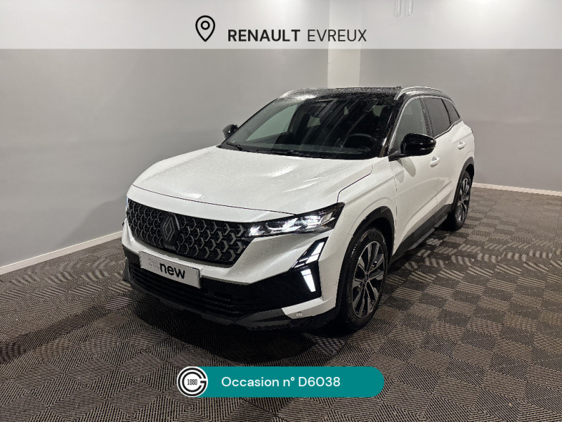 Aide au parking AV/AR et latéral / Airbags latéraux, milieu AV et rideaux / Alerte de distance de sécurité / Alerte franchissement de ligne et assistant maintien dans la voie / Avertisseur d'angle mort et prévention sortie de voie en cas de dépassement / Avertisseur de sortie de stationnement en marche AR avec freinage d'urgence automatique / Barres de toit longitudinales / Boîte de vitesse hybride multimode 6 rapports / Carte Renault accès et démarrage mains libres / Ciel de toit gris anthracite / Clignotants AR dynamiques / Console centrale avec repose main coulissant / Détection intelligente des limitations de vitesse et prévention survitesse / Faux plancher de coffre / Feux AR à LED avec effet 3D / Feux LED adaptive vision (avec fonction antibrouillard intégrée) / Frein de parking électrique avec fonction Auto-Hold / Jantes alliage 19" Komah diamantées noir brillant / Kit de gonflage / Lumière d'ambiance personnalisable / Maintenance connectée, incluse pendant 8 ans / Mise à jour système (via firmware over the air FOTA), inclus pendant 5 ans / Multi-sense / My Safety switch (raccourci vers configuration personnalisée des aides à la conduite) / Navigation Google Maps / Notice d'utilisation digitale embarqué dans le système multimédia du véhicule / Pack connected driving, inclus pendant 5 ans / Pack contrôle à distance (via l¿application My Renault), inclus pendant 5 ans / Prédisposition éthylotest / Pré-équipement alarme / Rétroviseur intérieur électrochrome sans cadre / Sellerie mixte textile refined/tissu gris clair avec motif embossé / Sortie sécurisée des occupants / Système de reconnaissance du conducteur / Système ISOFIX sur siège passager & 2 places rang 2 / Système Multimédia openR link 12" : navigation, services Google, audio Arkamys Auditorium / Tableau de bord full numérique 12,3'' / 2 prises USB à l'AV et à l'AR