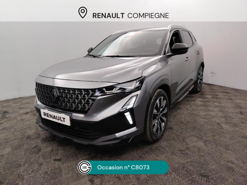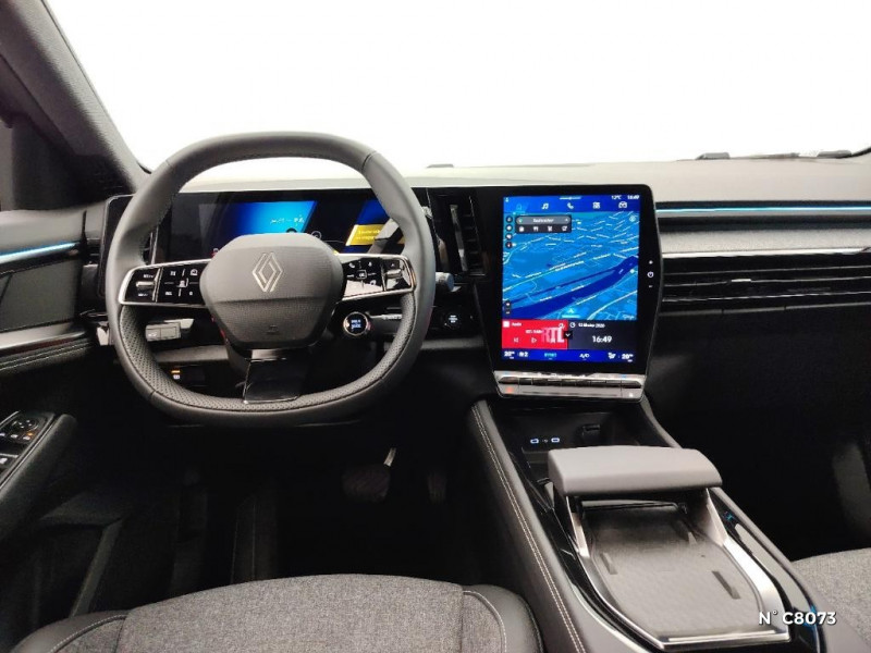Pré-équipement alarme / Sellerie mixte textile refined/tissu gris clair avec motif embossé / Sortie sécurisée des occupants / Système de reconnaissance du conducteur / Système ISOFIX sur siège passager & 2 places rang 2 / Système Multimédia openR link 12" : navigation, services Google, audio Arkamys Auditorium / Tableau de bord full numérique 12,3'' / 2 prises USB à l'AV et à l'AR / Mise à jour système (via firmware over the air FOTA), inclus pendant 5 ans / Aide au parking AV/AR et latéral / Airbags latéraux, milieu AV et rideaux / Alerte de distance de sécurité / Alerte franchissement de ligne et assistant maintien dans la voie / Avertisseur d'angle mort et prévention sortie de voie en cas de dépassement / Avertisseur de sortie de stationnement en marche AR avec freinage d'urgence automatique / Barres de toit longitudinales / Boîte de vitesse hybride multimode 6 rapports / Carte Renault accès et démarrage mains libres / Ciel de toit gris anthracite / Faux plancher de coffre / Feux AR à LED avec effet 3D / Feux LED adaptive vision (avec fonction antibrouillard intégrée) / Frein de parking électrique avec fonction Auto-Hold / Jantes alliage 19" Komah diamantées noir brillant / Kit de gonflage / Lumière d'ambiance personnalisable / Maintenance connectée, incluse pendant 8 ans / Clignotants AR dynamiques / Console centrale avec repose main coulissant / Détection intelligente des limitations de vitesse et prévention survitesse / Multi-sense / My Safety switch (raccourci vers configuration personnalisée des aides à la conduite) / Navigation Google Maps / Notice d'utilisation digitale embarqué dans le système multimédia du véhicule / Pack connected driving, inclus pendant 5 ans / Pack contrôle à distance (via l¿application My Renault), inclus pendant 5 ans / Prédisposition éthylotest / Rétroviseur intérieur électrochrome sans cadre
