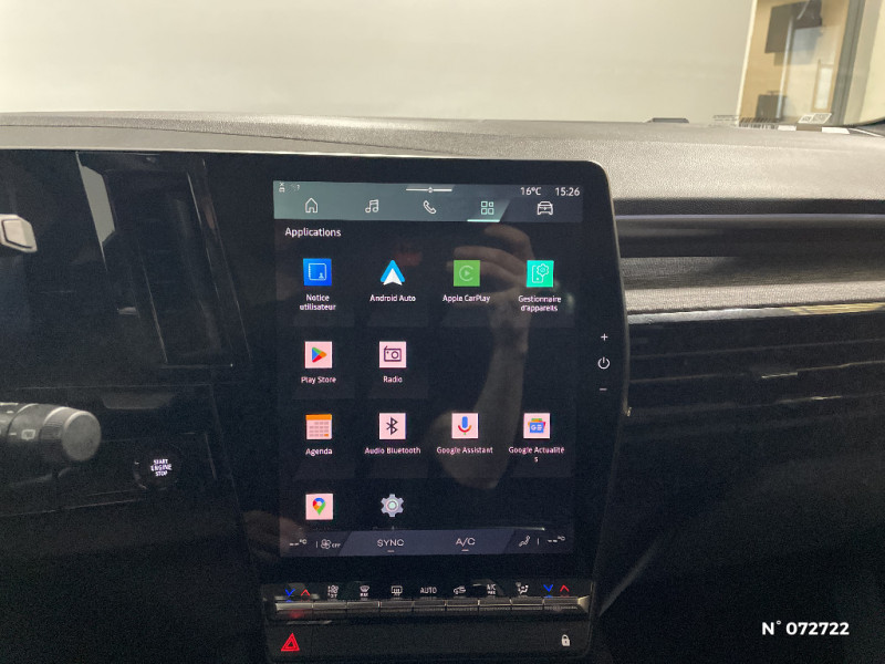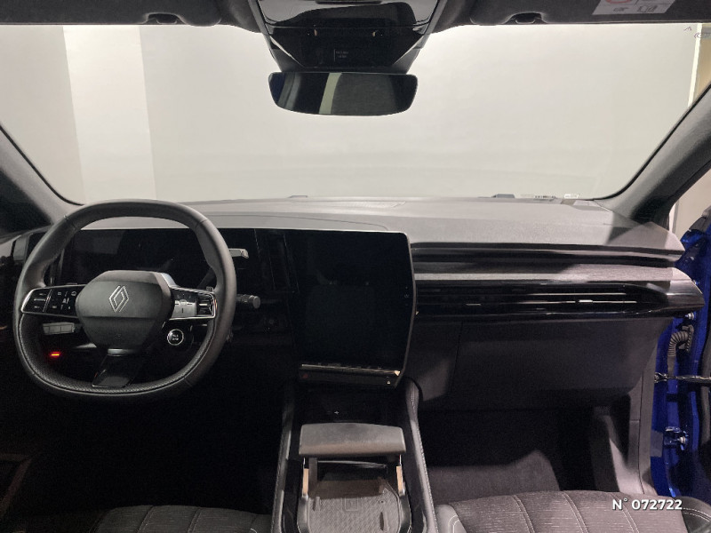 Aide au parking AV/AR et latéral / Rétroviseur intérieur électrochrome sans cadre / Sellerie mixte / tissu dégradé de gris / textile enduit grainé / Sièges avec système ISOFIX / Système Multimédia openR link 12" : navigation, services Google, audio Arkamys Auditorium / Tableau de bord full numérique 12,3'' / 2 prises USB à l'AV et à l'AR / Airbags latéraux, milieu AV et rideaux / Alerte de distance de sécurité / Alerte détection de fatigue / Alerte franchissement de ligne et assistant maintien dans la voie / Banquette AR coulissante 1/3-2/3 avec accoudoir central / Boîte de vitesse automatique 4 rapports / Carte Renault accès et démarrage mains libres / Ciel de toit gris anthracite / Commutation automatique des feux de route/croisement / Console centrale avec repose main coulissant / Détection intelligente des limitations de vitesse et prévention survitesse / Faux plancher de coffre / Feux AV full LED Adaptative Vision / Frein de parking électrique avec fonction Auto-Hold / Jantes alliage 19" Komah diamantées noir / Kit de gonflage / Lumière d'ambiance personnalisable / Miroir de surveillance enfants / Multi-sense / My Safety switch (raccourci vers configuration personnalisée des aides à la conduite) / Navigation Google Maps / Prédisposition éthylotest / Pré-équipement alarme
