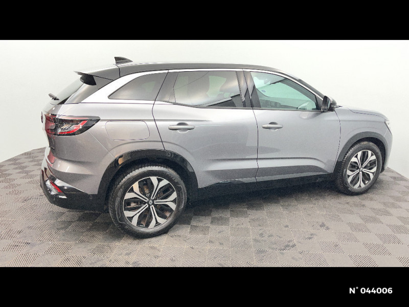 Alerte franchissement de ligne et assistant maintien dans la voie / Freinage actif d'urgence urbain (piéton + cycliste + intersection) / Kit de gonflage / Système Multimédia openR link 12" : navigation, services Google, audio Arkamys Auditorium / Sièges avec système ISOFIX / Notice d?utilisation digitale embarqué dans le système multimédia du véhicule / Feux AV full LED Adaptative Vision / Banquette AR coulissante 1/3-2/3 avec accoudoir central / Console centrale avec repose main coulissant / Faux plancher de coffre / Miroir de surveillance enfants / Pré-équipement alarme / Classe energetique 1 / Lumière d'ambiance personnalisable / Rétroviseur intérieur électrochrome sans cadre / Ciel de toit gris anthracite / Jantes alliage 19" Komah diamantées noir / Sellerie mixte similicuir / tissu dégradé de gris / 2 prises USB à l'AV et à l'AR / Navigation Google Maps / Système multimédia OpenR Link avec écran tactile 12" et services Google / Tableau de bord full numérique 12,3'' / Peinture opaque / Aide au parking AV/AR et latéral / Commutation automatique des feux de route/croisement / Multi-sense / Carte Renault accès et démarrage mains libres / Airbags latéraux, milieu AV et rideaux / Alerte de distance de sécurité