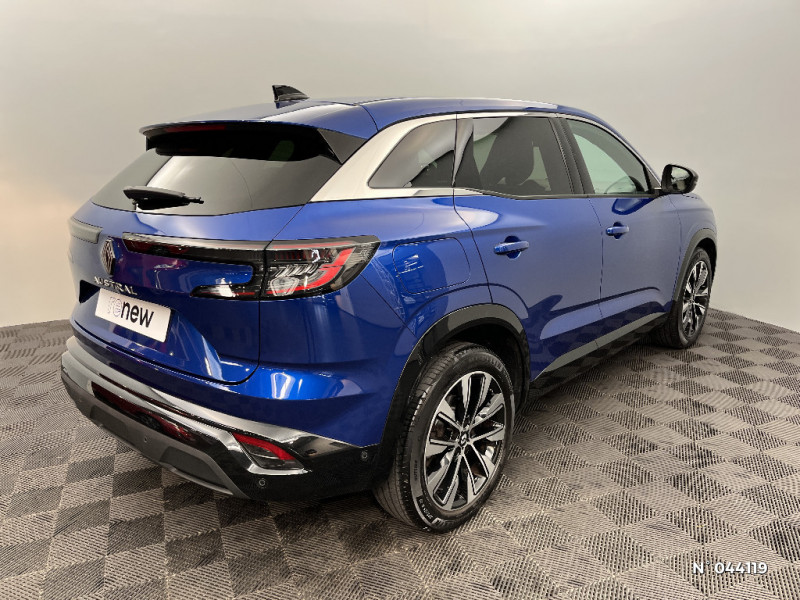 Peinture opaque / Aide au parking AV/AR et latéral / Commutation automatique des feux de route/croisement / Multi-sense / Carte Renault accès et démarrage mains libres / Airbags latéraux, milieu AV et rideaux / Alerte de distance de sécurité / Système multimédia OpenR Link avec écran tactile 12" et services Google / Tableau de bord full numérique 12,3'' / Alerte franchissement de ligne et assistant maintien dans la voie / Pré-équipement alarme / Evolution multimedia 1 / Classe energetique 1 / Système Multimédia openR link 12" : navigation, services Google, audio Arkamys Auditorium / Freinage actif d'urgence urbain (piéton + cycliste + intersection) / Kit de gonflage / Sièges avec système ISOFIX / Notice d?utilisation digitale embarqué dans le système multimédia du véhicule / Feux AV full LED Adaptative Vision / Banquette AR coulissante 1/3-2/3 avec accoudoir central / Console centrale avec repose main coulissant / Faux plancher de coffre / Miroir de surveillance enfants / Lumière d'ambiance personnalisable / Rétroviseur intérieur électrochrome sans cadre / Ciel de toit gris anthracite / Jantes alliage 19" Komah diamantées noir / Sellerie mixte similicuir / tissu dégradé de gris / 2 prises USB à l'AV et à l'AR / Navigation Google Maps
