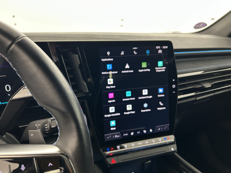 2 prises USB à l'AV et à l'AR / Active driver assist régulateur de vitesse adaptatif intelligent + centrage dans la voie / Airbags latéraux, milieu AV et rideaux / Alerte de distance de sécurité / Alerte franchissement de ligne et assistant maintien dans la voie / Appuie-têtes AV grand confort / Avertisseur d'angle mort et prévention sortie de voie en cas de dépassement / Avertisseur de sortie de stationnement en marche AR avec freinage d'urgence automatique / Banquette AR coulissante 1/3-2/3 avec accoudoir central / Barres de toit longitudinales / Caméra 3D vision 360° / Carte Renault accès et démarrage mains libres / Ciel de toit gris anthracite / Clignotants AR dynamiques / Commutation automatique des feux de route/croisement / Conduite hybride prédictive / Console centrale avec repose main coulissant / Easy park assist et aides au parking AV, AR et latérale / Eclairage d'accompagnement au sol avec projection logo / Faux plancher de coffre / Feux AR à LED avec effet 3D / Feux AV full LED Adaptative Vision / Freinage actif d'urgence urbain (piéton + cycliste + intersection) / Frein de parking électrique avec fonction Auto-Hold / Hayon motorisé main libre / Jantes alliage 20" Daytona diamantées noir / Kit de gonflage / Lumière d'ambiance personnalisable / Miroir de surveillance enfants / Multi-sense / Navigation Google Maps / Pack Design esprit Alpine extérieur / Pack Design esprit Alpine intérieur / Pare-brise chauffant / Pré-équipement alarme / Rétroviseur intérieur électrochrome sans cadre / Rétroviseurs extérieurs électriques à mémoire, dégivrants, rabattables automatiquement / Sellerie mixte tissu carbone / alcantara avec surpiqûres bleues / Seuil de portes / Siège conducteur électrique avec réglage lombaire et fonction massage, siège passager électrique / Sièges avec système ISOFIX / Sortie sécurisée des occupants / Système Multimédia openR link 12" : navigation, services Google, audio Arkamys Auditorium / Tableau de bord full numérique 12,3'' / Volant chauffant / Volant cuir & Alcantara et surpiqûres bleu/blanc/rouge / / 3008,kadjar,