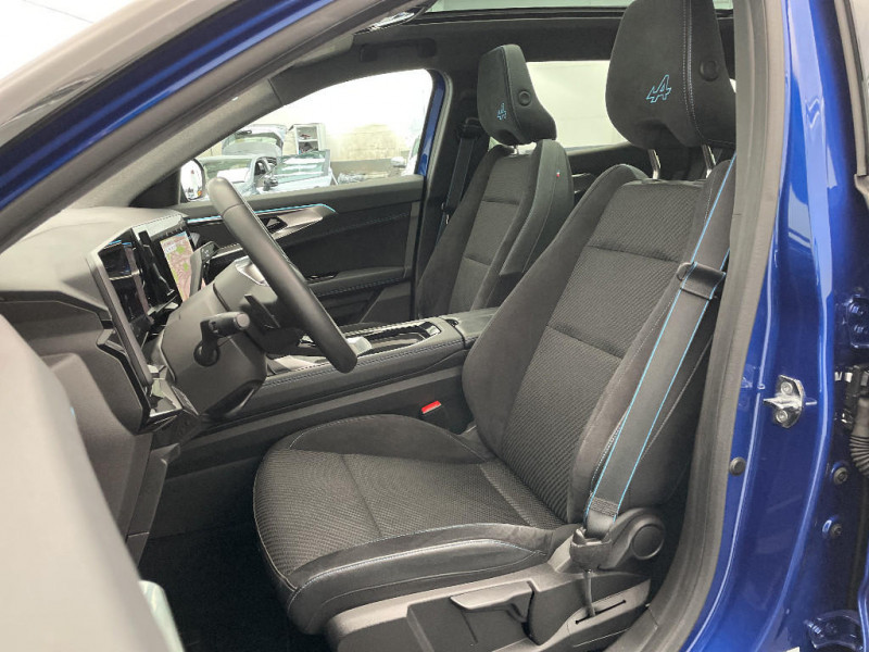 Alerte franchissement de ligne et assistant maintien dans la voie / Evolution multimedia 1 / Classe energetique 1 / Feux AV full LED Adaptative Vision / Console centrale avec repose main coulissant / Faux plancher de coffre / Barres de toit longitudinales / Peinture opaque / Aide au parking AV/AR et latéral / Commutation automatique des feux de route/croisement / Multi-sense / Carte Renault accès et démarrage mains libres / Airbags latéraux, milieu AV et rideaux / Alerte de distance de sécurité / Freinage actif d'urgence urbain (piéton + cycliste + intersection) / Kit de gonflage / Sièges avec système ISOFIX / Notice d?utilisation digitale embarqué dans le système multimédia du véhicule / Miroir de surveillance enfants / Lumière d'ambiance personnalisable / Rétroviseur intérieur électrochrome sans cadre / Ciel de toit gris anthracite / Clignotants AR dynamiques / Feux AR à LED avec effet 3D / Jantes alliage 20" Daytona diamantées noir / Pack Design esprit Alpine extérieur / Pack Design esprit Alpine intérieur / Sellerie mixte tissu carbone / alcantara avec surpiqures bleu / Seuil de portes / Volant cuir & Alcantara et surpiqures bleu/blanc/rouge / 2 prises USB à l'AV et à l'AR / Navigation Google Maps / Système multimédia OpenR Link avec écran tactile 12" et services Google / Tableau de bord full numérique 12,3'' / Pré-équipement alarme
