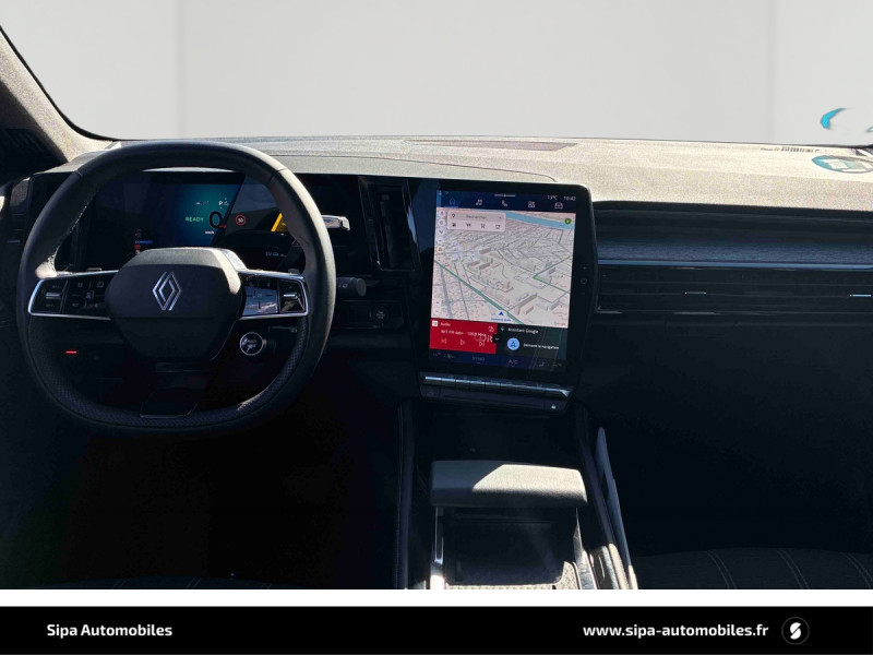 Aide au parking AV/AR et latéral / Boîte de vitesse automatique 4 rapports / Commutation automatique des feux de route/croisement / Feux AV full LED Adaptative Vision / Jantes alliage 19" Komah diamantées noir / My Safety switch (raccourci vers configuration personnalisée des aides à la conduite) / Navigation Google Maps / Système Multimédia openR link 12" : navigation, services Google, audio Arkamys Auditorium / 2 prises USB à l'AV et à l'AR / Airbags latéraux, milieu AV et rideaux / Alerte de distance de sécurité / Alerte détection de fatigue / Alerte franchissement de ligne et assistant maintien dans la voie / Banquette AR coulissante 1/3-2/3 avec accoudoir central / Carte Renault accès et démarrage mains libres / Ciel de toit gris anthracite / Console centrale avec repose main coulissant / Détection intelligente des limitations de vitesse et prévention survitesse / Faux plancher de coffre / Frein de parking électrique avec fonction Auto-Hold / Kit de gonflage / Lumière d'ambiance personnalisable / Miroir de surveillance enfants / Multi-sense / Pré-équipement alarme / Prédisposition éthylotest / Rétroviseur intérieur électrochrome sans cadre / Sièges avec système ISOFIX / Tableau de bord full numérique 12,3''