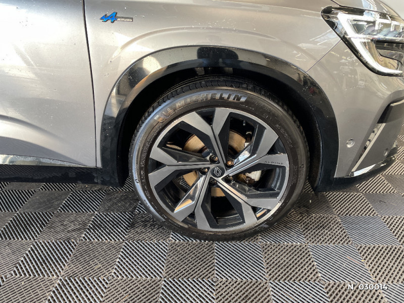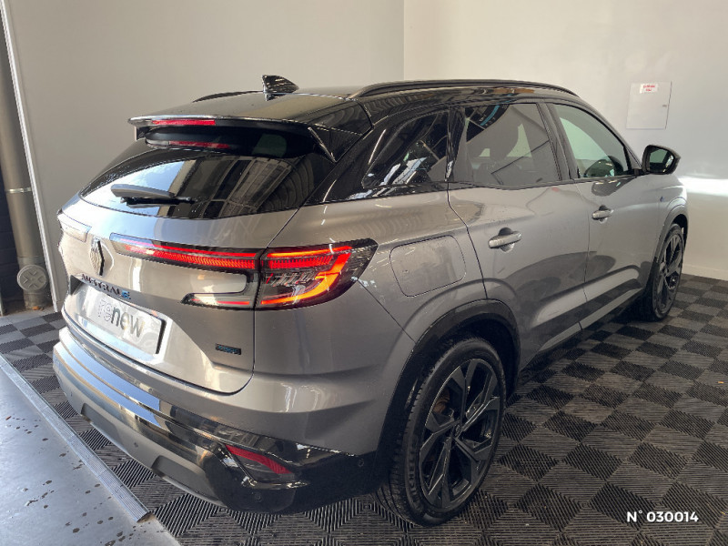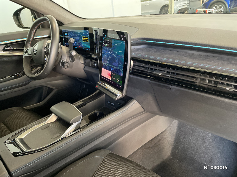Alerte de distance de sécurité / Freinage actif d'urgence urbain (piéton + cycliste + intersection) / Kit de gonflage / Sièges avec système ISOFIX / Avertisseur d?angle mort et prévention sortie de voie en cas de dépassement / Alerte franchissement de ligne et assistant maintien dans la voie / Avertisseur de sortie de stationnement en marche AR avec freinage d'urgence automatique / Pré-équipement alarme / Sortie sécurisée des occupants / Classe energetique 1 / Active driver assist régulateur de vitesse adaptatif intelligent + centrage dans la voie / Conduite hybride prédictive / Eclairage d'accompagnement au sol avec projection logo / Système Multimédia openR link 12" : navigation, services Google, audio Arkamys Auditorium / Active driver assist / Notice d?utilisation digitale embarqué dans le système multimédia du véhicule / Caméra 3D vision 360° / Easy park assist et aides au parking avant, arrière et latérale / Feux AV full LED Adaptative Vision / Appuie-têtes AV grand confort / Banquette AR coulissante 1/3-2/3 avec accoudoir central / Console centrale avec repose main coulissant / Faux plancher de coffre / Hayon motorisé main libre / Miroir de surveillance enfants / Lumière d'ambiance personnalisable / Pare-brise chauffant / Rétroviseur intérieur électrochrome sans cadre / Rétroviseurs extérieurs électriques à mémoire, dégivrants, rabattables automatiquement / Barres de toit longitudinales / Peinture opaque / Commutation automatique des feux de route/croisement / Siège conducteur électrique avec réglage lombaire et fonction massage, siège passager électrique / Ciel de toit gris anthracite / Clignotants AR dynamiques / Feux AR à LED avec effet 3D / Jantes alliage 20" Daytona diamantées noir / Pack Design esprit Alpine extérieur / Pack Design esprit Alpine intérieur / Sellerie mixte tissu carbone / alcantara avec surpiqures bleu / Seuil de portes / Volant cuir & Alcantara et surpiqures bleu/blanc/rouge / 2 prises USB à l'AV et à l'AR / Navigation Google Maps / Système multimédia OpenR Link avec écran tactile 12" et services Google / Tableau de bord full numérique 12,3'' / Multi-sense / Carte Renault accès et démarrage mains libres / Volant chauffant / Airbags latéraux, milieu AV et rideaux