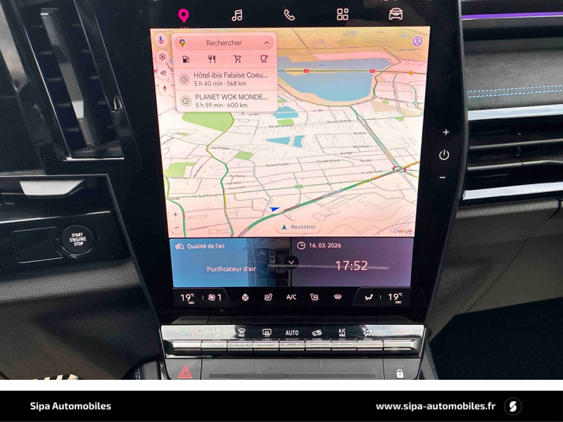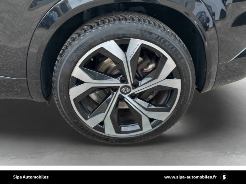 Avertisseur de sortie de stationnement en marche AR avec freinage d'urgence automatique / Commutation automatique des feux de route/croisement / Easy park assist et aides au parking AV, AR et latérale / Feux AR à LED avec effet 3D / Feux AV full LED Adaptative Vision / Jantes alliage 20" Daytona diamantées noir / Navigation Google Maps / Pack Design esprit Alpine extérieur / Pack Design esprit Alpine intérieur / Rétroviseurs extérieurs électriques à mémoire, dégivrants, rabattables automatiquement / Système Multimédia openR link 12" : navigation, services Google, audio Arkamys Auditorium / Volant cuir & Alcantara et surpiqûres bleu/blanc/rouge / 2 prises USB à l'AV et à l'AR / Active driver assist régulateur de vitesse adaptatif intelligent + centrage dans la voie / Airbags latéraux, milieu AV et rideaux / Alerte de distance de sécurité / Alerte franchissement de ligne et assistant maintien dans la voie / Appuie-têtes AV grand confort / Avertisseur d'angle mort et prévention sortie de voie en cas de dépassement / Banquette AR coulissante 1/3-2/3 avec accoudoir central / Barres de toit longitudinales / Caméra 3D vision 360° / Carte Renault accès et démarrage mains libres / Ciel de toit gris anthracite / Clignotants AR dynamiques / Conduite hybride prédictive / Console centrale avec repose main coulissant / Eclairage d'accompagnement au sol avec projection logo / Faux plancher de coffre / Frein de parking électrique avec fonction Auto-Hold / Freinage actif d'urgence urbain (piéton + cycliste + intersection) / Hayon motorisé mains libres / Kit de gonflage / Lumière d'ambiance personnalisable / Miroir de surveillance enfants / Multi-sense / Pare-brise chauffant / Pré-équipement alarme / Rétroviseur intérieur électrochrome sans cadre / Seuil de portes / Siège conducteur électrique avec réglage lombaire et fonction massage, siège passager électrique / Sièges avec système ISOFIX / Sortie sécurisée des occupants / Tableau de bord full numérique 12,3'' / Volant chauffant