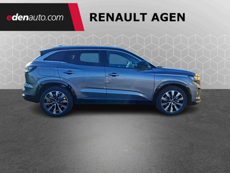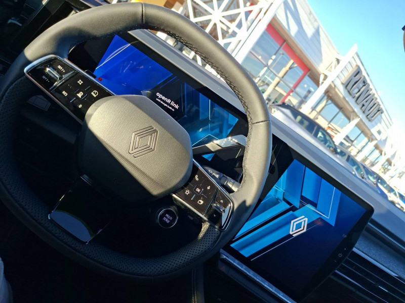 2 prises USB à l'AV et à l'AR / Aide au parking AV/AR et latéral / Airbags latéraux, milieu AV et rideaux / Alerte de distance de sécurité / Alerte franchissement de ligne et assistant maintien dans la voie / Avertisseur d'angle mort et prévention sortie de voie en cas de dépassement / Avertisseur de sortie de stationnement en marche AR avec freinage d'urgence automatique / Barres de toit longitudinales / Boîte de vitesse hybride multimode 6 rapports / Carte Renault accès et démarrage mains libres / Ciel de toit gris anthracite / Clignotants AR dynamiques / Console centrale avec repose main coulissant / Détection intelligente des limitations de vitesse et prévention survitesse / Faux plancher de coffre / Feux AR à LED avec effet 3D / Feux LED adaptive vision (avec fonction antibrouillard intégrée) / Frein de parking électrique avec fonction Auto-Hold / Jantes alliage 19" Komah diamantées noir brillant / Kit de gonflage / Lumière d'ambiance personnalisable / Maintenance connectée, incluse pendant 8 ans / Mise à jour système (via firmware over the air FOTA), inclus pendant 5 ans / Multi-sense / My Safety switch (raccourci vers configuration personnalisée des aides à la conduite) / Navigation Google Maps / Notice d'utilisation digitale embarqué dans le système multimédia du véhicule / Pack connected driving, inclus pendant 5 ans / Pack contrôle à distance (via l'application My Renault), inclus pendant 5 ans / Prédisposition éthylotest / Pré-équipement alarme / Rétroviseur intérieur électrochrome sans cadre / Sellerie mixte textile refined/tissu gris clair avec motif embossé / Sortie sécurisée des occupants / Système de reconnaissance du conducteur / Système ISOFIX sur siège passager & 2 places rang 2 / Système Multimédia openR link 12" : navigation, services Google, audio Arkamys Auditorium / Tableau de bord full numérique 12,3''