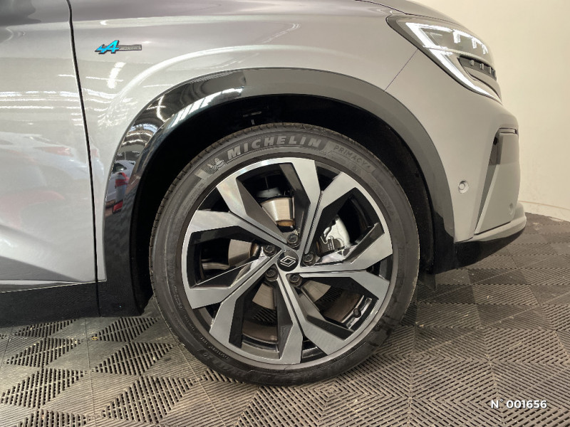 Multi-sense / Active driver assist régulateur de vitesse adaptatif intelligent + centrage dans la voie / Eclairage d'accompagnement au sol avec projection logo / Système Multimédia openR link 12" : navigation, services Google, audio Arkamys Auditorium / Alerte détection de fatigue / Prédisposition éthylotest / Détection intelligente des limitations de vitesse et prévention survitesse / My Safety switch (raccourci vers configuration personnalisée des aides à la conduite) / Boîte de vitesse automatique 4 rapports / Feux AR à LED avec effet 3D / Jantes alliage 20" Daytona diamantées noir / Pack Design esprit Alpine extérieur / Pack Design esprit Alpine intérieur / Sellerie mixte tissu carbone / alcantara avec surpiqures bleu / Seuil de portes / 2 prises USB à l'AV et à l'AR / Navigation Google Maps / Tableau de bord full numérique 12,3'' / Alerte franchissement de ligne et assistant maintien dans la voie / Avertisseur de sortie de stationnement en marche AR avec freinage d'urgence automatique / Pré-équipement alarme / Sortie sécurisée des occupants / Siège conducteur électrique avec réglage lombaire et fonction massage, siège passager électrique / Ciel de toit gris anthracite / Clignotants AR dynamiques / Pare-brise chauffant / Rétroviseur intérieur électrochrome sans cadre / Rétroviseurs extérieurs électriques à mémoire, dégivrants, rabattables automatiquement / Carte Renault accès et démarrage mains libres / Volant chauffant / Airbags latéraux, milieu AV et rideaux / Alerte de distance de sécurité / Kit de gonflage / Sièges avec système ISOFIX / Avertisseur d?angle mort et prévention sortie de voie en cas de dépassement / Frein de parking électrique avec fonction Auto-Hold / Caméra 3D vision 360° / Easy park assist et aides au parking avant, arrière et latérale / Feux AV full LED Adaptative Vision / Banquette AR coulissante 1/3-2/3 avec accoudoir central / Console centrale avec repose main coulissant / Faux plancher de coffre / Hayon motorisé main libre / Miroir de surveillance enfants / Lumière d'ambiance personnalisable / Barres de toit longitudinales / Commutation automatique des feux de route/croisement