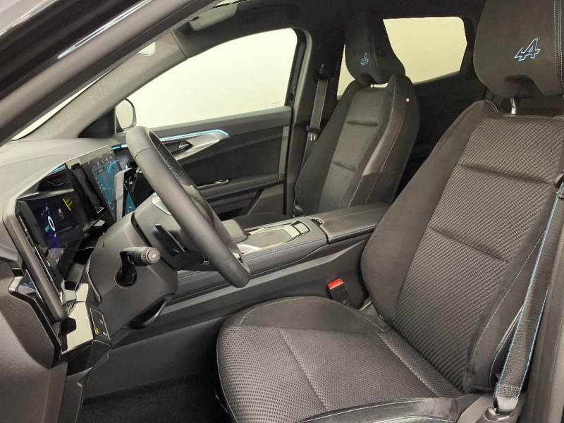 Ciel de toit gris anthracite / Clignotants AR dynamiques / Feux AR à LED avec effet 3D / Jantes alliage 20" Daytona diamantées noir / Pack Design esprit Alpine extérieur / Pack Design esprit Alpine intérieur / Sellerie mixte tissu carbone / alcantara avec surpiqures bleu / Seuil de portes / 2 prises USB à l'AV et à l'AR / Navigation Google Maps / Barres de toit longitudinales / Tableau de bord full numérique 12,3'' / Alerte franchissement de ligne et assistant maintien dans la voie / Pré-équipement alarme / Système Multimédia openR link 12" : navigation, services Google, audio Arkamys Auditorium / Alerte détection de fatigue / Prédisposition éthylotest / Détection intelligente des limitations de vitesse et prévention survitesse / My Safety switch (raccourci vers configuration personnalisée des aides à la conduite) / Aide au parking AV/AR et latéral / Commutation automatique des feux de route/croisement / Multi-sense / Carte Renault accès et démarrage mains libres / Airbags latéraux, milieu AV et rideaux / Alerte de distance de sécurité / Kit de gonflage / Sièges avec système ISOFIX / Frein de parking électrique avec fonction Auto-Hold / Feux AV full LED Adaptative Vision / Console centrale avec repose main coulissant / Faux plancher de coffre / Miroir de surveillance enfants / Lumière d'ambiance personnalisable / Rétroviseur intérieur électrochrome sans cadre