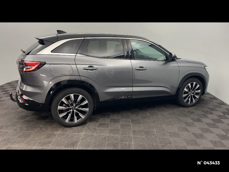 Ciel de toit gris anthracite / Système Multimédia openR link 12" : navigation, services Google, audio Arkamys Auditorium / Sellerie mixte similicuir / tissu dégradé de gris / 2 prises USB à l'AV et à l'AR / Navigation Google Maps / Système multimédia OpenR Link avec écran tactile 12" et services Google / Aide au parking AV/AR et latéral / Commutation automatique des feux de route/croisement / Multi-sense / Carte Renault accès et démarrage mains libres / Airbags latéraux, milieu AV et rideaux / Alerte de distance de sécurité / Freinage actif d'urgence urbain (piéton + cycliste + intersection) / Kit de gonflage / Sièges avec système ISOFIX / Frein de parking électrique avec fonction Auto-Hold / Notice d?utilisation digitale embarqué dans le système multimédia du véhicule / Feux AV full LED Adaptative Vision / Banquette AR coulissante 1/3-2/3 avec accoudoir central / Console centrale avec repose main coulissant / Faux plancher de coffre / Miroir de surveillance enfants / Lumière d'ambiance personnalisable / Rétroviseur intérieur électrochrome sans cadre / Tableau de bord full numérique 12,3'' / Alerte franchissement de ligne et assistant maintien dans la voie / Pré-équipement alarme / Classe energetique 1 / Jantes alliage 19" Komah diamantées noir