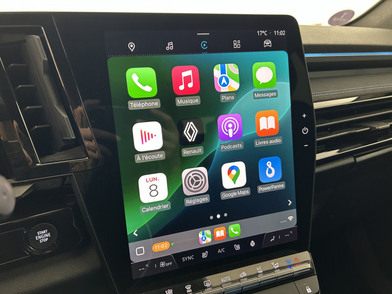 2 prises USB à l'AV et à l'AR / Active driver assist régulateur de vitesse adaptatif intelligent + centrage dans la voie / Airbags latéraux, milieu AV et rideaux / Alerte de distance de sécurité / Alerte franchissement de ligne et assistant maintien dans la voie / Appuie-têtes AV grand confort / Avertisseur d'angle mort et prévention sortie de voie en cas de dépassement / Avertisseur de sortie de stationnement en marche AR avec freinage d'urgence automatique / Banquette AR coulissante 1/3-2/3 avec accoudoir central / Barres de toit longitudinales / Caméra 3D vision 360° / Carte Renault accès et démarrage mains libres / Ciel de toit gris anthracite / Clignotants AR dynamiques / Commutation automatique des feux de route/croisement / Conduite hybride prédictive / Console centrale avec repose main coulissant / Easy park assist et aides au parking AV, AR et latérale / Eclairage d'accompagnement au sol avec projection logo / Faux plancher de coffre / Feux AR à LED avec effet 3D / Feux AV full LED Adaptative Vision / Freinage actif d'urgence urbain (piéton + cycliste + intersection) / Frein de parking électrique avec fonction Auto-Hold / Hayon motorisé main libre / Jantes alliage 20" Daytona diamantées noir / Kit de gonflage / Lumière d'ambiance personnalisable / Miroir de surveillance enfants / Multi-sense / Navigation Google Maps / Pack Design esprit Alpine extérieur / Pack Design esprit Alpine intérieur / Pare-brise chauffant / Pré-équipement alarme / Rétroviseur intérieur électrochrome sans cadre / Rétroviseurs extérieurs électriques à mémoire, dégivrants, rabattables automatiquement / Sellerie mixte tissu carbone / alcantara avec surpiqûres bleues / Seuil de portes / Siège conducteur électrique avec réglage lombaire et fonction massage, siège passager électrique / Sièges avec système ISOFIX / Sortie sécurisée des occupants / Système Multimédia openR link 12" : navigation, services Google, audio Arkamys Auditorium / Tableau de bord full numérique 12,3'' / Volant chauffant / Volant cuir & Alcantara et surpiqûres bleu/blanc/rouge / / 3008,kadjar,