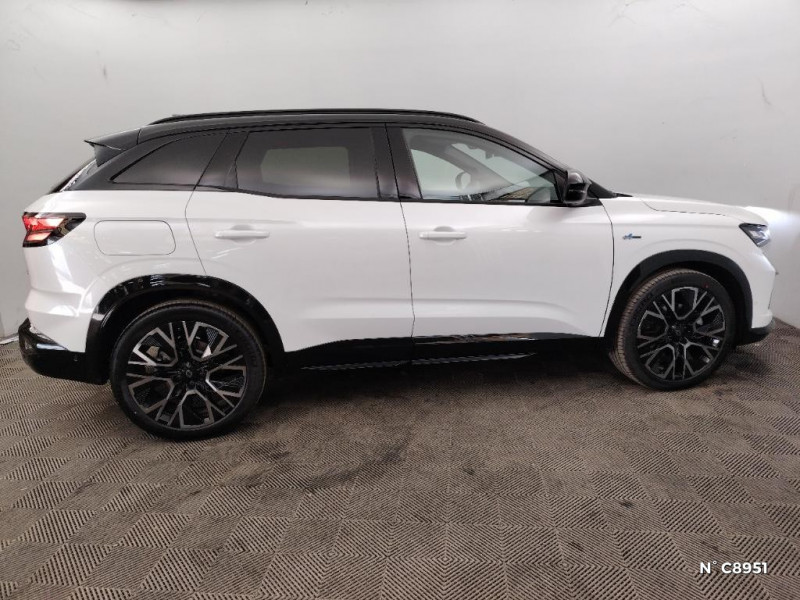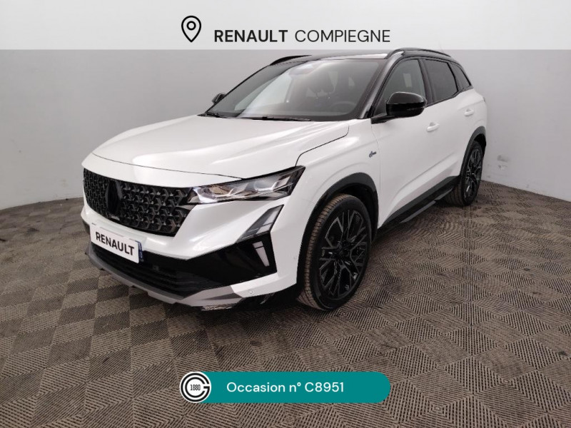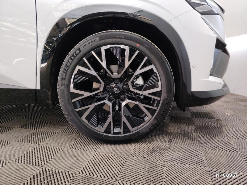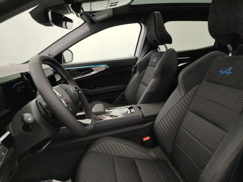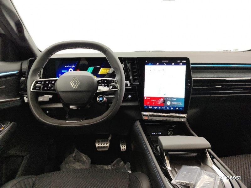Volant chauffant / 2 prises USB à l'AV et à l'AR / Aide au parking AV/AR et latéral / Airbags latéraux, milieu AV et rideaux / Alerte de distance de sécurité / Alerte franchissement de ligne et assistant maintien dans la voie / Assistant éco-conduite prédictif / Avertisseur d'angle mort et prévention sortie de voie en cas de dépassement / Avertisseur de sortie de stationnement en marche AR avec freinage d'urgence automatique / Banquette AR coulissante 1/3-2/3 avec accoudoir central / Barres de toit longitudinales / Boîte de vitesse hybride multimode 6 rapports / Carte Renault accès et démarrage mains libres / Active driver assist : régulateur de vitesse adaptatif intelligent + centrage dans la voie / Ciel de toit gris anthracite / Clignotants AR dynamiques / Console centrale avec repose main coulissant / Détection intelligente des limitations de vitesse et prévention survitesse / Faux plancher de coffre / Feux AR à LED avec effet 3D / Feux LED adaptive vision (avec fonction antibrouillard intégrée) / Frein de parking électrique avec fonction Auto-Hold / Hayon motorisé mains libres / Jantes alliage 20" Altitude diamanté noir avec vernis fumé gris / Kit de gonflage / Lumière d'ambiance personnalisable / Maintenance connectée, incluse pendant 8 ans / Mise à jour système (via firmware over the air FOTA), inclus pendant 5 ans / Multi-sense / My Safety switch (raccourci vers configuration personnalisée des aides à la conduite) / Navigation Google Maps / Notice d'utilisation digitale embarqué dans le système multimédia du véhicule / Pack connected driving, inclus pendant 5 ans / Pack contrôle à distance (via l¿application My Renault), inclus pendant 5 ans / Pack Design esprit Alpine extérieur / Pack Design esprit Alpine intérieur / Sellerie mixte tissu carbone Alcantara® avec surpiqûres bleu, blanc, rouge / Seuil de portes / Siège conducteur électrique avec réglage lombaire et fonction massage, siège passager électrique / Sortie sécurisée des occupants / Système de reconnaissance du conducteur / Système ISOFIX sur siège passager & 2 places rang 2 / Système Multimédia openR link 12" : navigation, services Google, audio Arkamys Auditorium / Tableau de bord full numérique 12,3'' / Prédisposition éthylotest / Pré-équipement alarme / Rétroviseur intérieur électrochrome sans cadre
