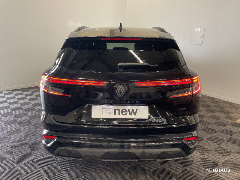 Carte Renault accès et démarrage mains libres / Volant chauffant / Airbags latéraux, milieu AV et rideaux / Alerte de distance de sécurité / Détection intelligente des limitations de vitesse et prévention survitesse / My Safety switch (raccourci vers configuration personnalisée des aides à la conduite) / Prédisposition éthylotest / Kit de gonflage / Sièges avec système ISOFIX / Avertisseur d?angle mort et prévention sortie de voie en cas de dépassement / Frein de parking électrique avec fonction Auto-Hold / Caméra 3D vision 360° / Easy park assist et aides au parking avant, arrière et latérale / Feux AV full LED Adaptative Vision / Appuie-têtes AV grand confort / Banquette AR coulissante 1/3-2/3 avec accoudoir central / Console centrale avec repose main coulissant / Faux plancher de coffre / Hayon motorisé main libre / Miroir de surveillance enfants / Lumière d'ambiance personnalisable / Pare-brise chauffant / Rétroviseur intérieur électrochrome sans cadre / Rétroviseurs extérieurs électriques à mémoire, dégivrants, rabattables automatiquement / Siège conducteur électrique avec réglage lombaire et fonction massage, siège passager électrique / Ciel de toit gris anthracite / Clignotants AR dynamiques / Jantes alliage 20" Daytona diamantées noir / Pack Design esprit Alpine extérieur / Pack Design esprit Alpine intérieur / Sellerie mixte tissu carbone / alcantara avec surpiqures bleu / Seuil de portes / 2 prises USB à l'AV et à l'AR / Navigation Google Maps / Tableau de bord full numérique 12,3'' / Alerte franchissement de ligne et assistant maintien dans la voie / Avertisseur de sortie de stationnement en marche AR avec freinage d'urgence automatique / Pré-équipement alarme / Sortie sécurisée des occupants / Active driver assist régulateur de vitesse adaptatif intelligent + centrage dans la voie / Eclairage d'accompagnement au sol avec projection logo / Système Multimédia openR link 12" : navigation, services Google, audio Arkamys Auditorium / Alerte détection de fatigue / Feux AR à LED avec effet 3D / Barres de toit longitudinales / Commutation automatique des feux de route/croisement / Multi-sense