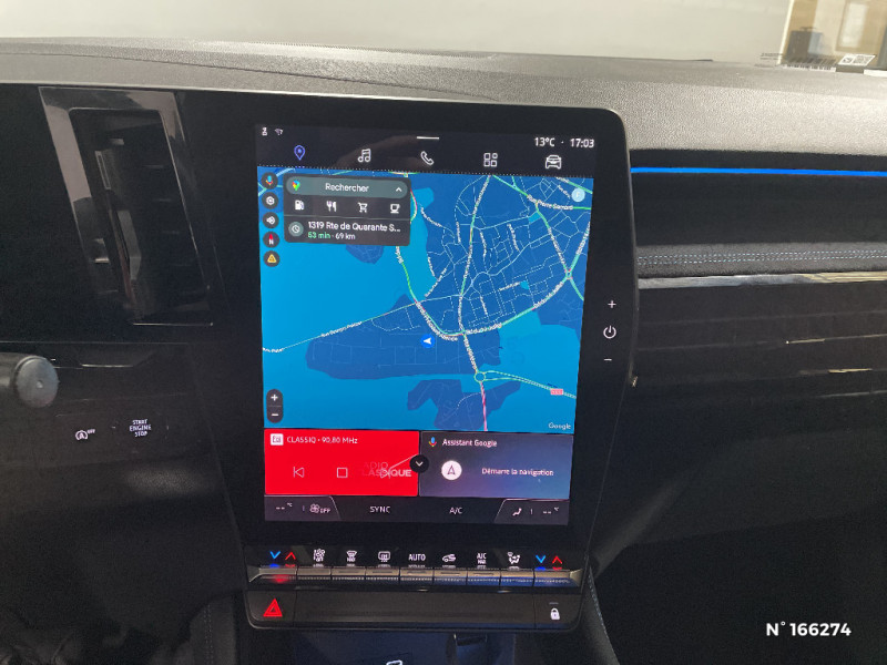 2 prises USB à l'AV et à l'AR / Navigation Google Maps / Système multimédia OpenR Link avec écran tactile 12" et services Google / Tableau de bord full numérique 12,3'' / Alerte franchissement de ligne et assistant maintien dans la voie / Pré-équipement alarme / Evolution multimedia 1 / Classe energetique 1 / Jantes alliage 20" Daytona diamantées noir / Pack Design esprit Alpine extérieur / Pack Design esprit Alpine intérieur / Sellerie mixte tissu carbone / alcantara avec surpiqures bleu / Seuil de portes / Volant cuir & Alcantara et surpiqures bleu/blanc/rouge / Ciel de toit gris anthracite / Clignotants AR dynamiques / Feux AR à LED avec effet 3D / Barres de toit longitudinales / Peinture opaque / Aide au parking AV/AR et latéral / Commutation automatique des feux de route/croisement / Multi-sense / Carte Renault accès et démarrage mains libres / Airbags latéraux, milieu AV et rideaux / Alerte de distance de sécurité / Freinage actif d'urgence urbain (piéton + cycliste + intersection) / Kit de gonflage / Sièges avec système ISOFIX / Notice d?utilisation digitale embarqué dans le système multimédia du véhicule / Feux AV full LED Adaptative Vision / Console centrale avec repose main coulissant / Faux plancher de coffre / Miroir de surveillance enfants / Lumière d'ambiance personnalisable / Rétroviseur intérieur électrochrome sans cadre