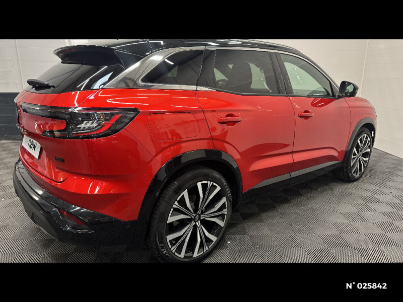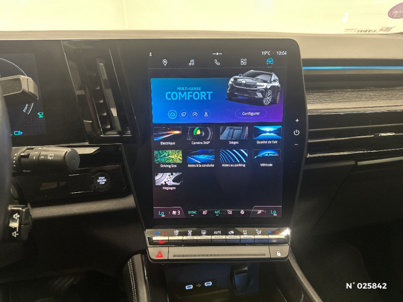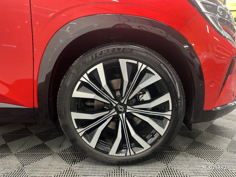 Notice d?utilisation digitale embarqué dans le système multimédia du véhicule / Caméra 3D vision 360° / Feux AV full LED Adaptative Vision / Banquette AR coulissante 1/3-2/3 avec accoudoir central / Console centrale avec repose main coulissant / Faux plancher de coffre / Hayon motorisé main libre / Miroir de surveillance enfants / Lumière d'ambiance personnalisable / Rétroviseur intérieur électrochrome sans cadre / Rétroviseurs extérieurs électriques à mémoire, dégivrants, rabattables automatiquement / Siège conducteur électrique avec réglage lombaire et fonction massage / Ciel de toit gris anthracite / Clignotants AR dynamiques / Feux AR à LED avec effet 3D / Insert de tableau de bord en bois véritable / Jantes alliage 20" Effie diamantées noir / Sellerie mixte similicuir / tissu carbone foncé avec surpiqures or / Seuil de portes / 2 prises USB à l'AV et à l'AR / Navigation Google Maps / Système multimédia OpenR Link avec écran tactile 12" et services Google / Tableau de bord full numérique 12,3'' / Alerte franchissement de ligne et assistant maintien dans la voie / Avertisseur de sortie de stationnement en marche AR avec freinage d'urgence automatique / Pré-équipement alarme / Sortie sécurisée des occupants / Classe energetique 1 / Barres de toit longitudinales / Peinture opaque / Aide au parking AV/AR et latéral / Commutation automatique des feux de route/croisement / Multi-sense / Carte Renault accès et démarrage mains libres / Volant chauffant / Airbags latéraux, milieu AV et rideaux / Alerte de distance de sécurité / Freinage actif d'urgence urbain (piéton + cycliste + intersection) / Kit de gonflage / Sièges avec système ISOFIX / Avertisseur d?angle mort et prévention sortie de voie en cas de dépassement / Classe energetique B