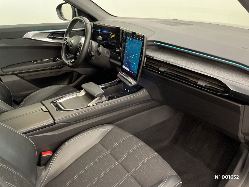 Banquette AR coulissante 1/3-2/3 avec accoudoir central / Console centrale avec repose main coulissant / Faux plancher de coffre / Miroir de surveillance enfants / Lumière d'ambiance personnalisable / Rétroviseur intérieur électrochrome sans cadre / Ciel de toit gris anthracite / Jantes alliage 19" Komah diamantées noir / Sellerie mixte similicuir / tissu dégradé de gris / Peinture opaque / Aide au parking AV/AR et latéral / Commutation automatique des feux de route/croisement / Multi-sense / Carte Renault accès et démarrage mains libres / 2 prises USB à l'AV et à l'AR / Navigation Google Maps / Système multimédia OpenR Link avec écran tactile 12" et services Google / Tableau de bord full numérique 12,3'' / Alerte franchissement de ligne et assistant maintien dans la voie / Pré-équipement alarme / Classe energetique 1 / Airbags latéraux, milieu AV et rideaux / Alerte de distance de sécurité / Freinage actif d'urgence urbain (piéton + cycliste + intersection) / Kit de gonflage / Sièges avec système ISOFIX / Classe energetique B / Notice d?utilisation digitale embarqué dans le système multimédia du véhicule / Feux AV full LED Adaptative Vision
