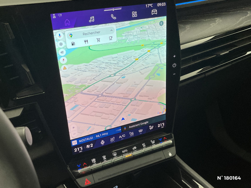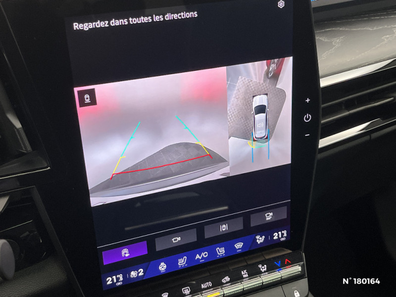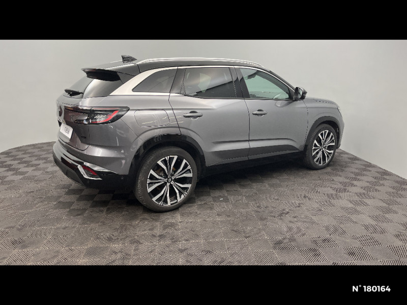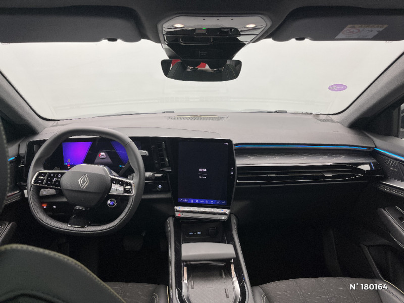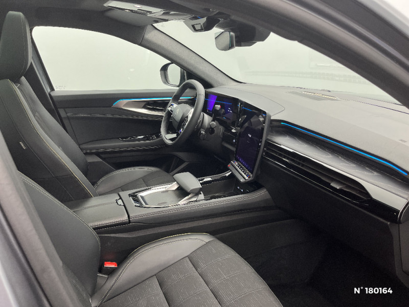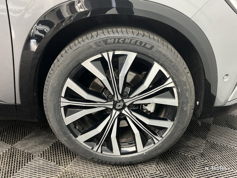Commutation automatique des feux de route/croisement / Console centrale avec repose main coulissant / Détection intelligente des limitations de vitesse et prévention survitesse / Easy park assist et aides au parking AV, AR et latérale / Eclairage d'accompagnement au sol avec projection logo / Kit de gonflage / Lumière d'ambiance personnalisable / Miroir de surveillance enfants / Multi-sense / My Safety switch (raccourci vers configuration personnalisée des aides à la conduite) / Navigation Google Maps / Pare-brise chauffant / Prédisposition éthylotest / Pré-équipement alarme / Rétroviseur intérieur électrochrome sans cadre / Rétroviseurs extérieurs électriques à mémoire, dégivrants, rabattables automatiquement / Sellerie mixte / tissu noir avec surpiqûres or/ textile enduit grainé / Seuil de portes / Siège conducteur électrique avec réglage lombaire et fonction massage / Sièges avec système ISOFIX / Sortie sécurisée des occupants / Système Multimédia openR link 12" : navigation, services Google, audio Arkamys Auditorium / Tableau de bord full numérique 12,3'' / Volant chauffant / 2 prises USB à l'AV et à l'AR / Airbags latéraux, milieu AV et rideaux / Alerte de distance de sécurité / Alerte détection de fatigue / Alerte franchissement de ligne et assistant maintien dans la voie / Avertisseur d'angle mort et prévention sortie de voie en cas de dépassement / Avertisseur de sortie de stationnement en marche AR avec freinage d'urgence automatique / Banquette AR coulissante 1/3-2/3 avec accoudoir central / Barres de toit longitudinales / Boîte de vitesse automatique 4 rapports / Caméra 3D vision 360° / Carte Renault accès et démarrage mains libres / Ciel de toit gris anthracite / Clignotants AR dynamiques / Faux plancher de coffre / Feux AR à LED avec effet 3D / Feux AV full LED Adaptative Vision / Frein de parking électrique avec fonction Auto-Hold / Hayon motorisé mains libres / Insert de tableau de bord en bois véritable / Jantes alliage 20" Effie diamantées noir