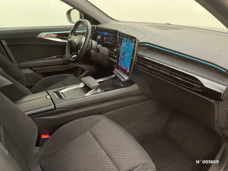 Feux AV full LED Adaptative Vision / Console centrale avec repose main coulissant / Faux plancher de coffre / Miroir de surveillance enfants / Lumière d'ambiance personnalisable / Rétroviseur intérieur électrochrome sans cadre / Ciel de toit gris anthracite / Clignotants AR dynamiques / Peinture opaque / Aide au parking AV/AR et latéral / Commutation automatique des feux de route/croisement / Multi-sense / Barres de toit longitudinales / Carte Renault accès et démarrage mains libres / Airbags latéraux, milieu AV et rideaux / Alerte de distance de sécurité / Freinage actif d'urgence urbain (piéton + cycliste + intersection) / Kit de gonflage / Sièges avec système ISOFIX / Notice d?utilisation digitale embarqué dans le système multimédia du véhicule / Feux AR à LED avec effet 3D / Jantes alliage 20" Daytona diamantées noir / Pack Design esprit Alpine extérieur / Pack Design esprit Alpine intérieur / Sellerie mixte tissu carbone / alcantara avec surpiqures bleu / Seuil de portes / Volant cuir & Alcantara et surpiqures bleu/blanc/rouge / 2 prises USB à l'AV et à l'AR / Navigation Google Maps / Système multimédia OpenR Link avec écran tactile 12" et services Google / Tableau de bord full numérique 12,3'' / Alerte franchissement de ligne et assistant maintien dans la voie / Pré-équipement alarme / Evolution multimedia 1 / Classe energetique 1