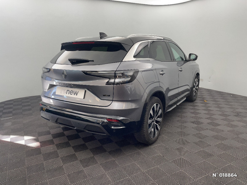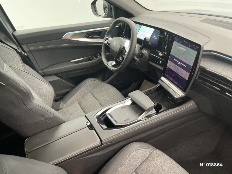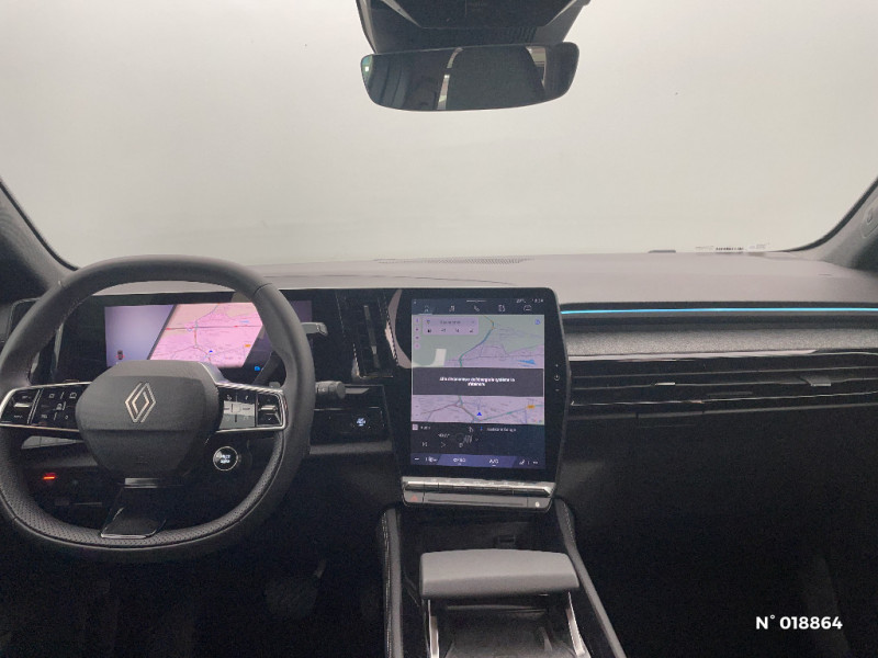 Sortie sécurisée des occupants / Pré-équipement alarme / Alerte détection de fatigue / Prédisposition éthylotest / Détection intelligente des limitations de vitesse et prévention survitesse / My Safety switch (raccourci vers configuration personnalisée des aides à la conduite) / Boîte de vitesse automatique 4 rapports / Pack contrôle à distance (via l?application My Renault), inclus pendant 5 ans / Barres de toit longitudinales / Aide au parking AV/AR et latéral / Multi-sense / Carte Renault accès et démarrage mains libres / Airbags latéraux, milieu AV et rideaux / Alerte de distance de sécurité / Kit de gonflage / Avertisseur d?angle mort et prévention sortie de voie en cas de dépassement / Frein de parking électrique avec fonction Auto-Hold / Notice d?utilisation digitale embarqué dans le système multimédia du véhicule / Console centrale avec repose main coulissant / Faux plancher de coffre / Lumière d'ambiance personnalisable / Rétroviseur intérieur électrochrome sans cadre / Sièges avec système ISOFIX / Feux LED adaptive vision (avec fonction antibrouillard intégrée) / Sellerie mixte textile refined/tissu gris clair avec motif embossé / Jantes alliage 19" Komah diamantées noir brillant / Boîte de vitesse hybride multimode 6 rapports / Mise à jour système (via firmware over the air FOTA), inclus pendant 5 ans / Maintenance connectée, incluse pendant 8 ans / Pack connected driving, inclus pendant 5 ans / Ciel de toit gris anthracite / Clignotants AR dynamiques / Feux AR à LED avec effet 3D / 2 prises USB à l'AV et à l'AR / Navigation Google Maps / Tableau de bord full numérique 12,3'' / Alerte franchissement de ligne et assistant maintien dans la voie / Avertisseur de sortie de stationnement en marche AR avec freinage d'urgence automatique / Système Multimédia openR link 12" : navigation, services Google, audio Arkamys Auditorium