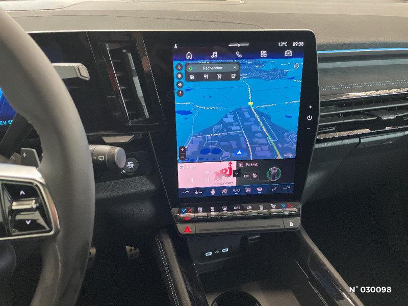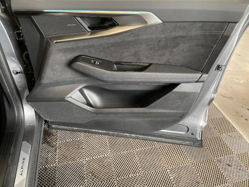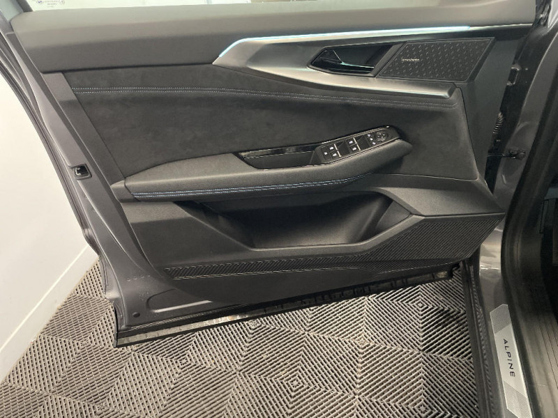 2 prises USB à l'AV et à l'AR / Siège conducteur électrique avec réglage lombaire et fonction massage, siège passager électrique / Active driver assist régulateur de vitesse adaptatif intelligent + centrage dans la voie / Airbags latéraux, milieu AV et rideaux / Alerte de distance de sécurité / Alerte détection de fatigue / Alerte franchissement de ligne et assistant maintien dans la voie / Appuie-têtes AV grand confort / Avertisseur d'angle mort et prévention sortie de voie en cas de dépassement / Avertisseur de sortie de stationnement en marche AR avec freinage d'urgence automatique / Banquette AR coulissante 1/3-2/3 avec accoudoir central / Barres de toit longitudinales / Boîte de vitesse automatique 4 rapports / Caméra 3D vision 360° / Carte Renault accès et démarrage mains libres / Ciel de toit gris anthracite / Clignotants AR dynamiques / Commutation automatique des feux de route/croisement / Console centrale avec repose main coulissant / Détection intelligente des limitations de vitesse et prévention survitesse / Easy park assist et aides au parking AV, AR et latérale / Eclairage d'accompagnement au sol avec projection logo / Faux plancher de coffre / Feux AR à LED avec effet 3D / Feux AV full LED Adaptative Vision / Frein de parking électrique avec fonction Auto-Hold / Hayon motorisé mains libres / Jantes alliage 20" Daytona diamantées noir / Kit de gonflage / Lumière d'ambiance personnalisable / Miroir de surveillance enfants / Multi-sense / My Safety switch (raccourci vers configuration personnalisée des aides à la conduite) / Navigation Google Maps / Pack Design esprit Alpine extérieur / Pack Design esprit Alpine intérieur / Pare-brise chauffant / Prédisposition éthylotest / Pré-équipement alarme / Rétroviseur intérieur électrochrome sans cadre / Rétroviseurs extérieurs électriques à mémoire, dégivrants, rabattables automatiquement / Sellerie mixte tissu carbone / alcantara avec surpiqûres bleues / Seuil de portes / Sièges avec système ISOFIX / Sortie sécurisée des occupants / Système Multimédia openR link 12" : navigation, services Google, audio Arkamys Auditorium / Tableau de bord full numérique 12,3'' / Volant chauffant