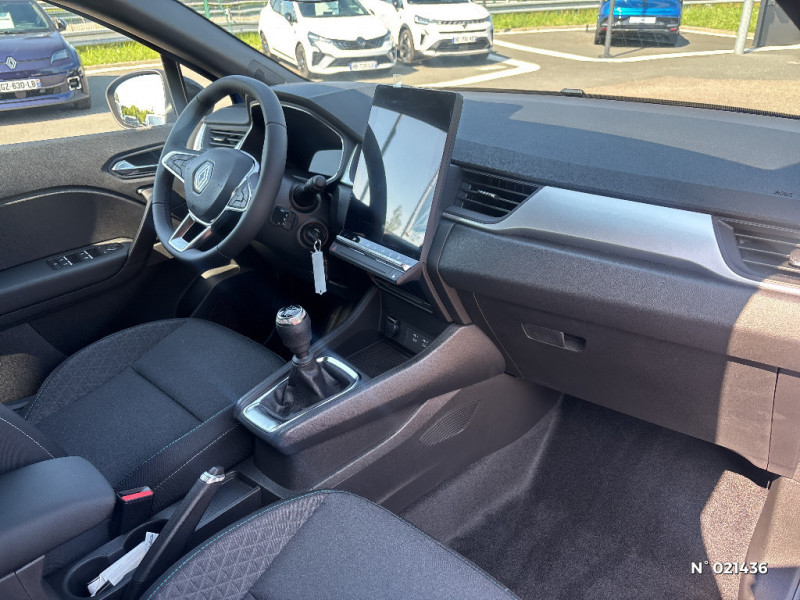 Ceinture centrale AR 3 points / Peinture mono-ton / Indicateur de changement de vitesse / Hayon manuel / Condamnation centralisée des portes avec télécommande et condamnation des portes en roulant / Kit de gonflage et de réparation des pneumatiques / Alerte oubli des ceintures de sécurité aux 5 places / Alerte distance de sécurité - Information dans tableau de bord / Feux AR LED avec signature en forme de "C" / Appel d'Urgence Renault / Système ISOFIX (i-Size) aux places latérales AR et passager AV / Antenne requin / Eclairage AV et AR Full LED Pure Vision / Coques de rétroviseurs noir/teinte caisse / Sans pontets AR / Enjoliveurs 17'' Nymphea / Volant en tissus / Sans chargeur à induction / Alerte détection de fatigue / Liseuses LED / Badges noir brillant / OpenR link 10,4'' access display audio avec tableau de bord avec écran numérique et personlisable 7" / Alerte sortie de voie / Contrôle de la traction (TCS) / Boîte de vitesse manuelle 6 rapports / Poignées de portes ton caisse / Console centrale de rangement avec accoudoir / Répétiteurs latéraux de changement de direction / Harmonie beige