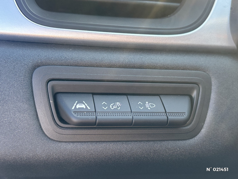 Indicateur de changement de vitesse / Poignées de portes ton caisse / Console centrale de rangement avec accoudoir / Répétiteurs latéraux de changement de direction / Commutation automatique des feux de route/croisement / Harmonie beige / Alerte oubli des ceintures de sécurité aux 5 places / Alerte distance de sécurité - Information dans tableau de bord / Navigation / Appel d'Urgence Renault / Système ISOFIX (i-Size) aux places latérales AR et passager AV / Freinage actif d'urgence avec détection piétons et cyclistes (AEBS City + Inter Urbain+ Piéton) / Alternateur renforcé / Roue alliage 17" / Feux AR 3D / Volant en tissus / Sans chargeur à induction / Classe energetique 1 / EASY LINK avec écran 7" avec réplication smartphone sans fil (compatible android auto et Apple CarPlay) / Ceinture centrale arrière 3 points / Eclairage AV et AR Full LED Pure Vision / Tableau de bord avec écran numérique 4,2'' et compteurs analogiques / Condamnation centralisée des portes avec télécommande et condamnation des portes en roulant / Kit de gonflage et de réparation des pneumatiques