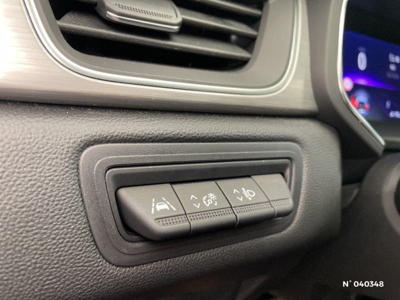 Sellerie TEP / tissu avec jonc gris / Navigation / Appel d'Urgence Renault / Système ISOFIX (i-Size) aux places latérales AR et passager AV / Pneus à faible résistance au roulement / Evolution de gamme 2021 / Freinage actif d'urgence avec détection piétons et cyclistes (AEBS City + Inter Urbain+ Piéton) / Sans prestation Bose / Renault Multi-Sense (choix de modes de conduite) / Poignées de portes ton caisse / Console centrale de rangement avec accoudoir / Compartimentage de coffre / Peinture bi-ton (montants de pare-brise, coques de rétroviseurs, toit) / Répétiteurs latéraux de changement de direction / Commutation automatique des feux de route/croisement / Harmonie beige / Aide au freinage actif d'urgence avec détection piétons (AEBS City + Inter Urbain + Piéton) / EASY LINK avec écran 7" et navigation / Eclairage AV et AR Full LED Pure Vision / Tableau de bord avec écran numérique et personnalisable 7" / Condamnation centralisée des portes avec télécommande et condamnation des portes en roulant / Kit de gonflage et de réparation des pneumatiques / Alarme de ceinture de sécurité (Réglementation SBR) / Alternateur renforcé / Evolution technique Licence Arkamis / Coques de rétroviseurs noir/teinte caisse / Alerte oubli des ceintures de sécurité aux 5 places / Alerte distance de sécurité - Information dans tableau de bord / Jantes alliage 18'' Pasadena diamantées gris erbé / Feux AR LED avec signature en forme de "C" et animation 3D / Harmonie foncé / Rétroviseur intérieur électrochrome / Ceinture centrale arrière 3 points / Peinture opaque / Indicateur de changement de vitesse