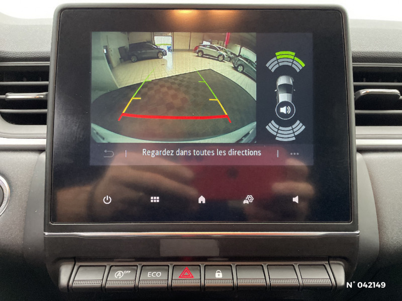 EASY LINK avec écran 7" avec réplication smartphone sans fil (compatible android auto et Apple CarPlay) / Ceinture centrale arrière 3 points / Indicateur de changement de vitesse / Poignées de portes ton caisse / Console centrale de rangement avec accoudoir / Répétiteurs latéraux de changement de direction / Commutation automatique des feux de route/croisement / Harmonie beige / Eclairage AV et AR Full LED Pure Vision / Tableau de bord avec écran numérique 4,2'' et compteurs analogiques / Condamnation centralisée des portes avec télécommande et condamnation des portes en roulant / Kit de gonflage et de réparation des pneumatiques / Alerte oubli des ceintures de sécurité aux 5 places / Alerte distance de sécurité - Information dans tableau de bord / Navigation / Appel d'Urgence Renault / Système ISOFIX (i-Size) aux places latérales AR et passager AV / Freinage actif d'urgence avec détection piétons et cyclistes (AEBS City + Inter Urbain+ Piéton) / Alternateur renforcé / Feux AR 3D / Volant en tissus