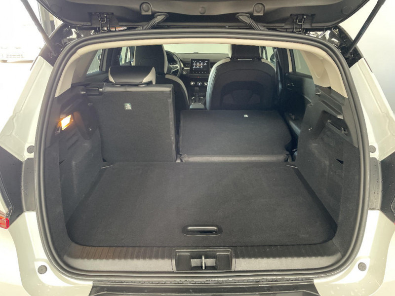 Compartimentage de coffre / Répétiteurs latéraux de changement de direction / Caméra 360° / Easy Park Assist / Commutation automatique des feux de route/croisement / Harmonie beige / Eclairage AV et AR Full LED Pure Vision / Condamnation centralisée des portes avec télécommande et condamnation des portes en roulant / Console centrale volante, avec levier de vitesse e-shifter et accoudoir central / Rétroviseur intérieur électrochrome Frameless / Peinture Bleu Marine Fumé / Toit Noir Etoilé / Kit de gonflage et de réparation des pneumatiques / Alerte oubli des ceintures de sécurité aux 5 places / Alerte distance de sécurité - Information dans tableau de bord / Feux AR LED avec signature en forme de "C" et animation 3D / Navigation / Appel d'Urgence Renault / Système ISOFIX (i-Size) aux places latérales AR et passager AV / Antenne requin / Pneus à faible résistance au roulement / EASY LINK avec écran 9.3" et navigation répliquée dans tableau de bord / Siège conducteur à réglage électrique 6 voies et réglage manuel lombaire / Freinage actif d'urgence avec détection piétons et cyclistes (AEBS City + Inter Urbain+ Piéton) / Tableau de bord avec écran numérique et personnalisable 10" / Jantes alliage 18'' iconic diamantées noires / Frein de parking électrique avec fonction Auto-Hold / Badging E-Tech Gold / Classe energetique 1 / EASY LINK avec écran 9.3" avec réplication navigation et smartphone sans fil / Ceinture centrale arrière 3 points / Indicateur de changement de vitesse / Renault Multi-Sense (choix de modes de conduite) / Poignées de portes ton caisse / Volant chauffant