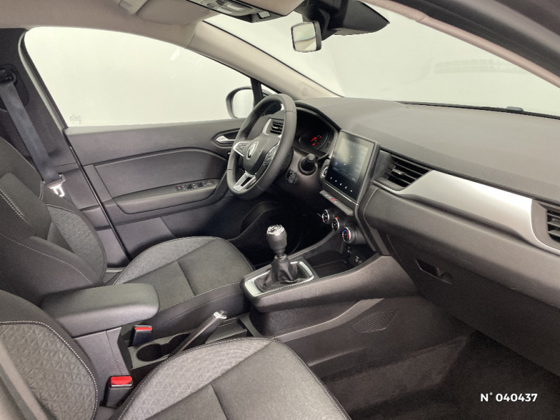 Ceinture centrale arrière 3 points / Indicateur de changement de vitesse / Console centrale de rangement avec accoudoir / Poignées de portes ton caisse / Condamnation centralisée des portes avec télécommande et condamnation des portes en roulant / Kit de gonflage et de réparation des pneumatiques / Alerte oubli des ceintures de sécurité aux 5 places / Alerte distance de sécurité - Information dans tableau de bord / Navigation / Appel d'Urgence Renault / Système ISOFIX (i-Size) aux places latérales AR et passager AV / Freinage actif d'urgence avec détection piétons et cyclistes (AEBS City + Inter Urbain+ Piéton) / Alternateur renforcé / Roue alliage 17" / Feux AR 3D / Volant en tissus / Sans chargeur à induction / Classe energetique 1 / EASY LINK avec écran 7" avec réplication smartphone sans fil (compatible android auto et Apple CarPlay) / Répétiteurs latéraux de changement de direction / Commutation automatique des feux de route/croisement / Harmonie beige / Eclairage AV et AR Full LED Pure Vision / Tableau de bord avec écran numérique 4,2'' et compteurs analogiques