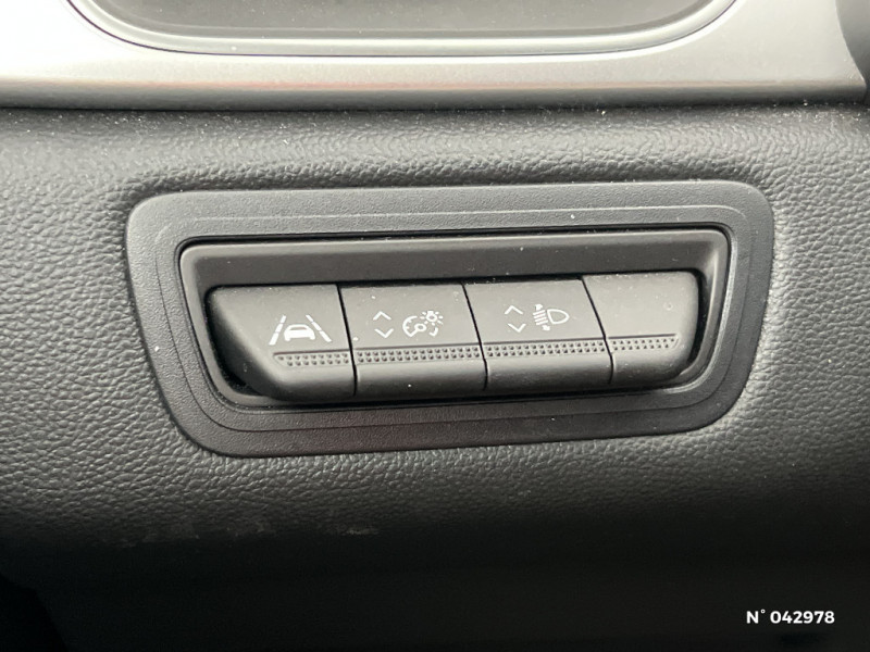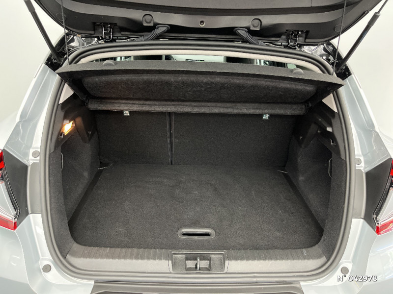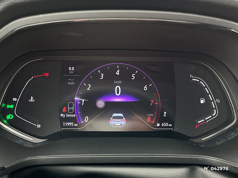 Compartiment de coffre / Ceinture centrale arrière 3 points / Indicateur de changement de vitesse / Renault Multi-Sense (choix de modes de conduite) / Poignées de portes ton caisse / Console centrale de rangement avec accoudoir / Répétiteurs latéraux de changement de direction / Commutation automatique des feux de route/croisement / Harmonie beige / Eclairage AV et AR Full LED Pure Vision / Tableau de bord avec écran numérique et personnalisable 7" / Condamnation centralisée des portes avec télécommande et condamnation des portes en roulant / Kit de gonflage et de réparation des pneumatiques / Alerte oubli des ceintures de sécurité aux 5 places / Alerte distance de sécurité - Information dans tableau de bord / Jantes alliage 18'' Pasadena diamantées gris erbé / Navigation / Appel d'Urgence Renault / Système ISOFIX (i-Size) aux places latérales AR et passager AV / Antenne requin / Pneus à faible résistance au roulement / Freinage actif d'urgence avec détection piétons et cyclistes (AEBS City + Inter Urbain+ Piéton) / Alternateur renforcé / Frein de parking électrique avec fonction Auto-Hold / Feux AR 3D / Volant en tissus / EASY LINK avec écran 7" avec réplication smartphone sans fil (compatible android auto et Apple CarPlay) / Sellerie tissu avec jonc gris / Rétroviseur intérieur électrochrome