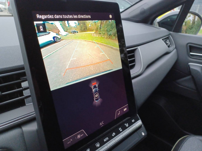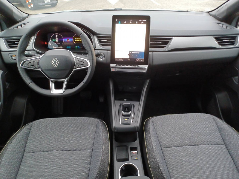 Aide au parking AV/AR et latéral / Alerte détection de fatigue / Alerte distance de sécurité - Information dans tableau de bord / Alerte oubli des ceintures de sécurité aux 5 places / Alerte sortie de voie / Antenne requin / Appel d'Urgence Renault / Boîte de vitesse hybride multimode 6 rapports / Cartographie Standard / Ceinture centrale AR 3 points / Condamnation centralisée des portes avec télécommande et condamnation des portes en roulant / Console centrale de rangement avec accoudoir / Contrôle de la traction (TCS) / Coques de rétroviseurs noir/teinte caisse / Eclairage AV et AR Full LED Pure Vision / Feux AR LED avec signature en forme de ''C'' et animation 3D / Frein de parking électrique avec fonction Auto-Hold / Harmonie noire / Hayon AR manuel / Indicateur de changement de vitesse / Jantes Aluminium 18'' / Kit de gonflage et de réparation des pneumatiques / Liseuses AV à LED / Maintenance connectée, incluse pendant 8 ans / Mise à jour système (via firmware over the air FOTA), inclus pendant 5 ans / OpenR link 10,4"avec navigation et services Google et tableau de bord numérique 10" / Pack connected driving, inclus pendant 5 ans / Pack contrôle à distance (via l'application My Renault), inclus pendant 5 ans / Plancher de coffre mobile / Poignées de portes ton caisse / Renault Multi-sense / Répétiteurs latéraux de changement de direction / Rétroviseur intérieur électrochrome / Sellerie Techno / Système ISOFIX (i-Size) aux places latérales AR et passager AV / Système multimédia openR link 10.4" avecGoogle intégré / Volant textile enduit grainé