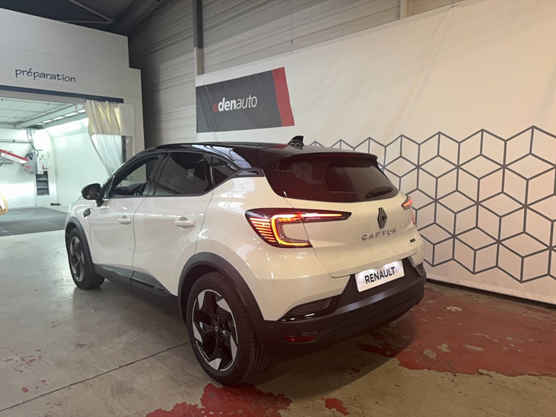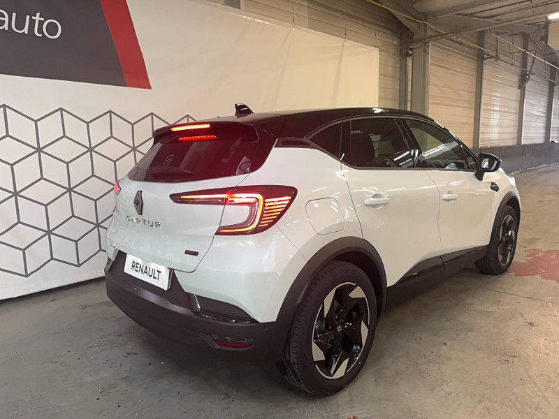 Aide au parking AV/AR et latéral / Alerte détection de fatigue / Alerte distance de sécurité - Information dans tableau de bord / Alerte oubli des ceintures de sécurité aux 5 places / Alerte sortie de voie / Antenne requin / Appel d'Urgence Renault / Boîte de vitesse hybride multimode 6 rapports / Cartographie Standard / Ceinture centrale AR 3 points / Condamnation centralisée des portes avec télécommande et condamnation des portes en roulant / Console centrale de rangement avec accoudoir / Contrôle de la traction (TCS) / Coques de rétroviseurs noir/teinte caisse / Eclairage AV et AR Full LED Pure Vision / Feux AR LED avec signature en forme de ''C'' et animation 3D / Frein de parking électrique avec fonction Auto-Hold / Harmonie noire / Hayon AR manuel / Indicateur de changement de vitesse / Jantes Aluminium 18'' / Kit de gonflage et de réparation des pneumatiques / Liseuses AV à LED / Maintenance connectée, incluse pendant 8 ans / Mise à jour système (via firmware over the air FOTA), inclus pendant 5 ans / OpenR link 10,4"avec navigation et services Google et tableau de bord numérique 10" / Pack connected driving, inclus pendant 5 ans / Pack contrôle à distance (via l'application My Renault), inclus pendant 5 ans / Plancher de coffre mobile / Poignées de portes ton caisse / Renault Multi-sense / Répétiteurs latéraux de changement de direction / Rétroviseur intérieur électrochrome / Sellerie Techno / Système ISOFIX (i-Size) aux places latérales AR et passager AV / Système multimédia openR link 10.4" avecGoogle intégré / Volant textile enduit grainé