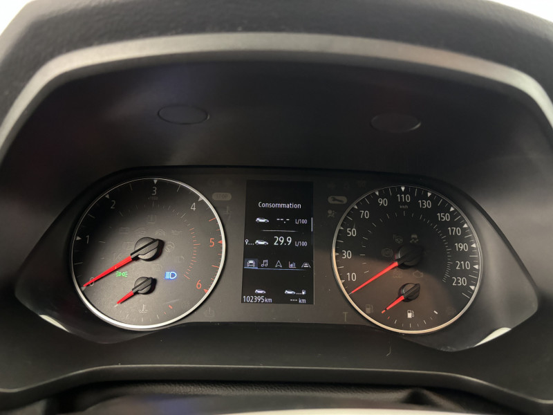 Aide au freinage actif d'urgence avec détection piétons (AEBS City + Inter Urbain + Piéton) / Alerte distance de sécurité - Information dans tableau de bord / Alerte oubli des ceintures de sécurité aux 5 places / Appel d'Urgence Renault / Ceinture centrale AR 3 points / Condamnation centralisée des portes avec télécommande et condamnation des portes en roulant / Console centrale de rangement avec accoudoir / EASY LINK avec écran 7" et navigation / Eclairage AV et AR Full LED Pure Vision / Enjoliveurs 17'' Nymphea / Feux AR LED avec signature en forme de "C" / Harmonie intérieure foncée / Indicateur de changement de vitesse / Kit de gonflage et de réparation des pneumatiques / Répétiteurs latéraux de changement de direction / Sellerie Tissu Noir / Gris avec rayures / Système ISOFIX (i-Size) aux places latérales AR et passager AV / Tableau de bord avec écran numérique 4,2'' et compteurs analogiques / / Véhicules équivalents: 2008 - C4 Cactus - Juke