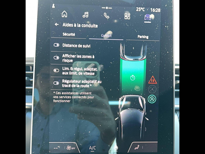 Aide au parking AV/AR et latéral / Alerte détection de fatigue / Alerte distance de sécurité - Information dans tableau de bord / Alerte oubli des ceintures de sécurité aux 5 places / Alerte sortie de voie / Alerte sortie sécurisée des occupants / Antenne requin / Appel d'Urgence Renault / Avertisseur d'angle mort et détection AR avec correction / Avertisseur de sortie de stationnement en marche AR / Boîte de vitesse hybride multimode 6 rapports / Cartographie Standard / Ceinture centrale AR 3 points / Condamnation centralisée des portes avec télécommande et condamnation des portes en roulant / Console flottante et e-shifter / Contrôle de la traction (TCS) / Coques de rétroviseurs noir/teinte caisse / Design esprit Alpine extérieur / Design esprit Alpine intérieur / Eclairage AV et AR Full LED Pure Vision / Feux AR LED avec signature en forme de ''C'' et animation 3D / Frein de parking électrique avec fonction Auto-Hold / Harmonie esprit Alpine / Hayon AR manuel / Indicateur de changement de vitesse / Jantes Aluminium 19'' / Kit de gonflage et de réparation des pneumatiques / Maintenance connectée, incluse pendant 8 ans / Miroirs de courtoisie rétroéclairés / Mise à jour système (via firmware over the air FOTA), inclus pendant 5 ans / OpenR link 10,4"avec navigation et services Google et tableau de bord numérique 10" / Pack connected driving, inclus pendant 5 ans / Pack contrôle à distance (via l'application My Renault), inclus pendant 5 ans / Plancher de coffre mobile / Poignées de portes ton caisse / Renault Multi-sense / Répétiteurs latéraux de changement de direction / Rétroviseur intérieur électrochrome Frameless / Sellerie Esprit Alpine / Système ISOFIX (i-Size) aux places latérales AR et passager AV / Système multimédia openR link 10.4" avecGoogle intégré / Volant chauffant / Volant textile enduit grainé