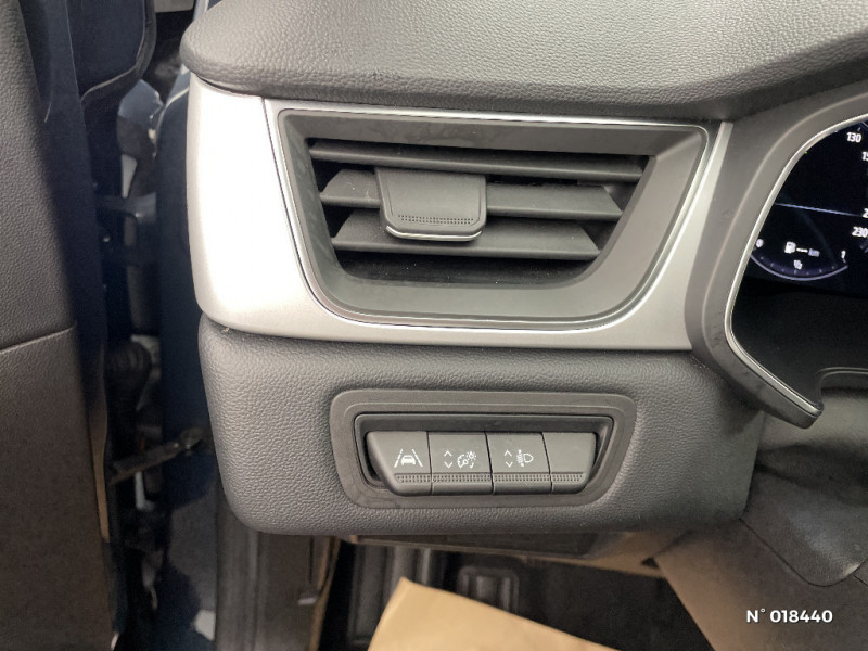 Sellerie tissu avec jonc gris / Répétiteurs latéraux de changement de direction / Commutation automatique des feux de route/croisement / Harmonie beige / Eclairage AV et AR Full LED Pure Vision / Tableau de bord avec écran numérique et personnalisable 7" / Condamnation centralisée des portes avec télécommande et condamnation des portes en roulant / Kit de gonflage et de réparation des pneumatiques / Alerte oubli des ceintures de sécurité aux 5 places / Alerte distance de sécurité - Information dans tableau de bord / Rétroviseur intérieur électrochrome / Ceinture centrale arrière 3 points / Indicateur de changement de vitesse / Renault Multi-Sense (choix de modes de conduite) / Poignées de portes ton caisse / Console centrale de rangement avec accoudoir / Compartimentage de coffre / Jantes alliage 18'' Pasadena diamantées gris erbé / Sellerie TEP / tissu avec jonc gris / Navigation / Appel d'Urgence Renault / Système ISOFIX (i-Size) aux places latérales AR et passager AV / Antenne requin / Pneus à faible résistance au roulement / Freinage actif d'urgence avec détection piétons et cyclistes (AEBS City + Inter Urbain+ Piéton) / Alternateur renforcé / Frein de parking électrique avec fonction Auto-Hold / Feux AR 3D / Volant en tissus / Classe energetique 1 / EASY LINK avec écran 7" avec réplication smartphone sans fil (compatible android auto et Apple CarPlay)