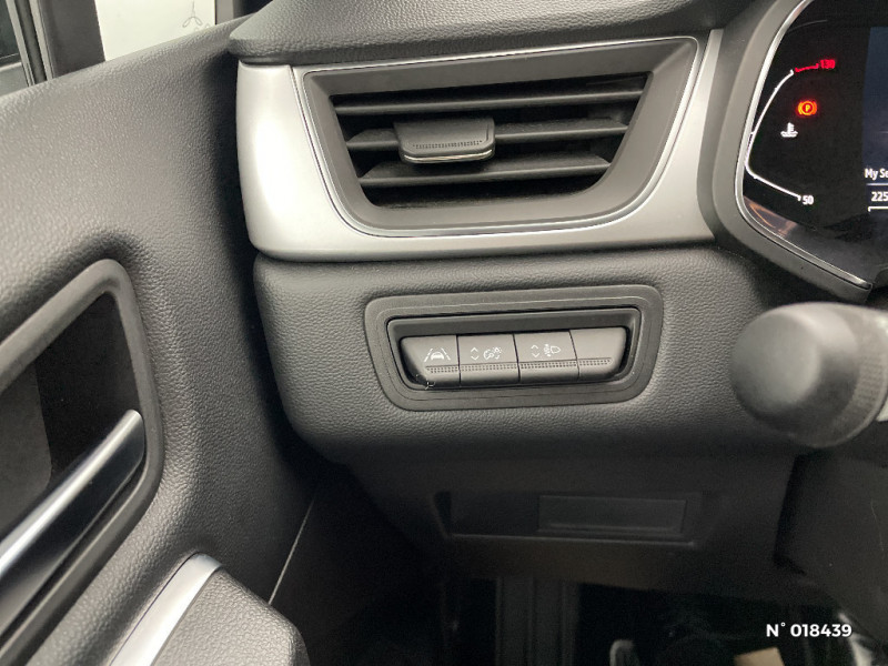 Répétiteurs latéraux de changement de direction / Indicateur de changement de vitesse / Renault Multi-Sense (choix de modes de conduite) / Poignées de portes ton caisse / Console centrale de rangement avec accoudoir / Compartimentage de coffre / Rétroviseur intérieur électrochrome / Ceinture centrale arrière 3 points / Classe energetique 1 / EASY LINK avec écran 7" avec réplication smartphone sans fil (compatible android auto et Apple CarPlay) / Sellerie tissu avec jonc gris / Condamnation centralisée des portes avec télécommande et condamnation des portes en roulant / Kit de gonflage et de réparation des pneumatiques / Alerte oubli des ceintures de sécurité aux 5 places / Alerte distance de sécurité - Information dans tableau de bord / Jantes alliage 18'' Pasadena diamantées gris erbé / Sellerie TEP / tissu avec jonc gris / Navigation / Appel d'Urgence Renault / Système ISOFIX (i-Size) aux places latérales AR et passager AV / Antenne requin / Pneus à faible résistance au roulement / Freinage actif d'urgence avec détection piétons et cyclistes (AEBS City + Inter Urbain+ Piéton) / Alternateur renforcé / Frein de parking électrique avec fonction Auto-Hold / Feux AR 3D / Volant en tissus / Sans chargeur à induction / Commutation automatique des feux de route/croisement / Harmonie beige / Eclairage AV et AR Full LED Pure Vision / Tableau de bord avec écran numérique et personnalisable 7"