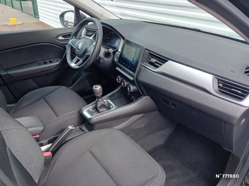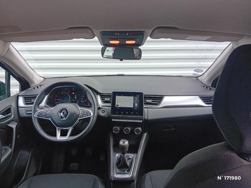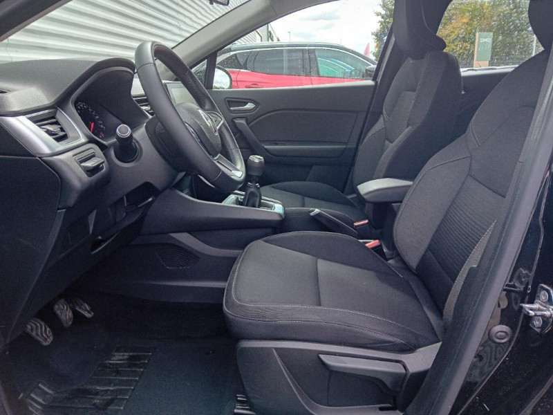 EASY LINK avec écran 7" : système multimédia compatible Android Auto et Apple CarPlay, Bluetooth / Console centrale de rangement avec accoudoir / Répétiteurs latéraux de changement de direction / Appel d'Urgence Renault / Aide au freinage actif d'urgence avec détection piétons (AEBS City + Inter Urbain + Piéton) / Ceinture centrale arrière 3 points / Peinture mono-ton / Indicateur de changement de vitesse / Système ISOFIX (i-Size) aux places latérales AR et passager AV / Eclairage AV et AR Full LED Pure Vision / Tableau de bord avec écran numérique 4,2'' et compteurs analogiques / Condamnation centralisée des portes avec télécommande et condamnation des portes en roulant / Kit de gonflage et de réparation des pneumatiques / Alerte oubli des ceintures de sécurité aux 5 places / Alerte distance de sécurité - Information dans tableau de bord / Feux AR LED avec signature en forme de "C" / Harmonie foncé / Sellerie Tissu Noir / Gris avec rayures