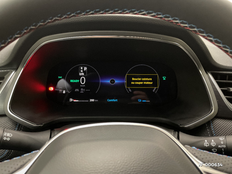 Sellerie Esprit Alpine / Système multimédia openR link 10.4" avecGoogle intégré / Plancher de coffre mobile / Indicateur de changement de vitesse / Hayon manuel / Poignées de portes ton caisse / Volant chauffant / Répétiteurs latéraux de changement de direction / Condamnation centralisée des portes avec télécommande et condamnation des portes en roulant / Rétroviseur intérieur électrochrome Frameless / Kit de gonflage et de réparation des pneumatiques / Alerte oubli des ceintures de sécurité aux 5 places / Alerte distance de sécurité - Information dans tableau de bord / Navigation / Appel d'Urgence Renault / Système ISOFIX (i-Size) aux places latérales AR et passager AV / Antenne requin / Aide au parking AV/AR et latéral / Eclairage AV et AR Full LED Pure Vision / Renault Multi-sense / Cartographie Standard / Feux AR LED avec signature en forme de ''C'' et animation 3D / Coques de rétroviseurs noir/teinte caisse / Tableau de bord avec écran numérique et personnalisable 10" / Frein de parking électrique avec fonction Auto-Hold / Design esprit Alpine extérieur / Design esprit Alpine intérieur / Plancher de coffre amovible / Alerte détection de fatigue / Compartiment de coffre / Harmonie esprit Alpine / Intel speed assist / Miroirs de courtoisie rétroéclairés / Console flottante et e-shifter / OpenR link 10,4''avec navigation et services Google et tableau de bord numérique 10" / Alerte sortie de voie / Ceinture centrale AR 3 points / Peinture mono-ton