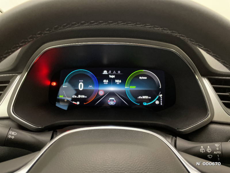 Harmonie beige / Commutation automatique des feux de route/croisement / Eclairage AV et AR Full LED Pure Vision / Condamnation centralisée des portes avec télécommande et condamnation des portes en roulant / Pneus à faible résistance au roulement / Liseuses AV à LED / Freinage actif d'urgence avec détection piétons et cyclistes (AEBS City + Inter Urbain+ Piéton) / Version Fast Track / Sans prestation Bose / Tableau de bord avec écran numérique et personnalisable 10" / Roue alliage 18" / Frein de parking électrique avec fonction Auto-Hold / Badging E-Tech Gold / Feux AR 3D / Volant en tissus / Classe energetique 1 / EASY LINK avec écran 9.3" avec réplication navigation et smartphone sans fil / Sellerie tissu avec jonc gris / Renault Multi-Sense (choix de modes de conduite) / Poignées de portes ton caisse / Console centrale de rangement avec accoudoir / Compartimentage de coffre / Coques de rétroviseurs ton toit / Peinture Blanc Nacré / Toit Noir Etoilé / Répétiteurs latéraux de changement de direction / Rétroviseur intérieur électrochrome / Ceinture centrale arrière 3 points / Indicateur de changement de vitesse / Alerte oubli des ceintures de sécurité aux 5 places / Alerte distance de sécurité - Information dans tableau de bord / Jantes alliage 18'' Pasadena diamantées gris erbé / Sellerie TEP / tissu avec jonc gris / Navigation / Appel d'Urgence Renault / Système ISOFIX (i-Size) aux places latérales AR et passager AV / Antenne requin
