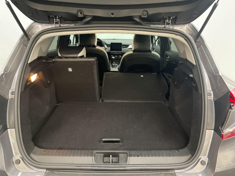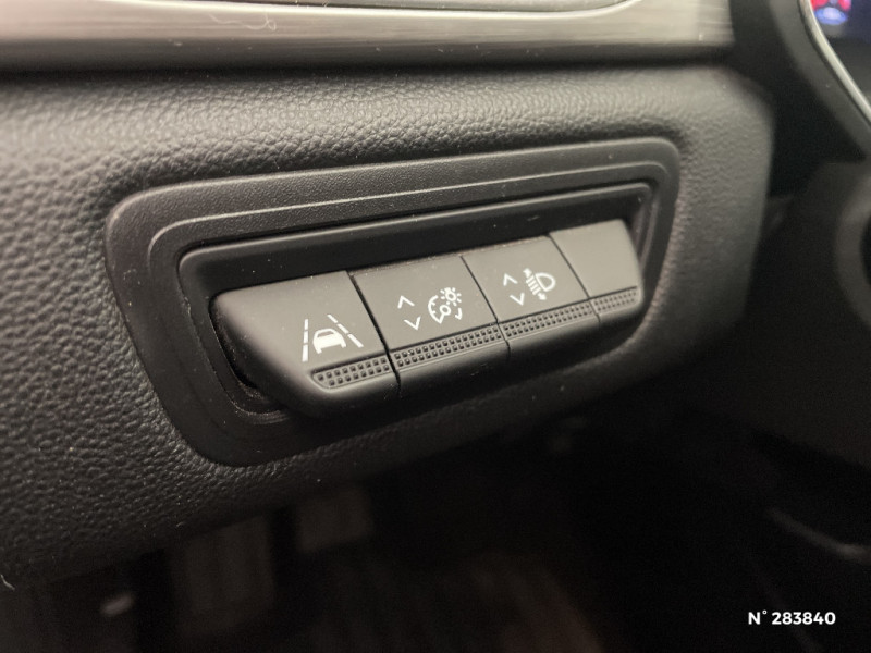 Rétroviseur intérieur électrochrome / Ceinture centrale arrière 3 points / Peinture opaque / Indicateur de changement de vitesse / Renault Multi-Sense (choix de modes de conduite) / Poignées de portes ton caisse / Console centrale de rangement avec accoudoir / Compartimentage de coffre / Peinture bi-ton (montants de pare-brise, coques de rétroviseurs, toit) / Répétiteurs latéraux de changement de direction / Aide au freinage actif d'urgence avec détection piétons (AEBS City + Inter Urbain + Piéton) / EASY LINK avec écran 7" et navigation / Eclairage AV et AR Full LED Pure Vision / Commutation automatique des feux de route/croisement / Harmonie beige / Tableau de bord avec écran numérique et personnalisable 7" / Condamnation centralisée des portes avec télécommande et condamnation des portes en roulant / Kit de gonflage et de réparation des pneumatiques / Alerte oubli des ceintures de sécurité aux 5 places / Alerte distance de sécurité - Information dans tableau de bord / Jantes alliage 18'' Pasadena diamantées gris erbé / Feux AR LED avec signature en forme de "C" et animation 3D / Harmonie foncé / Sellerie TEP / tissu avec jonc gris / Navigation / Appel d'Urgence Renault / Système ISOFIX (i-Size) aux places latérales AR et passager AV / Pneus à faible résistance au roulement / Evolution de gamme 2021 / Freinage actif d'urgence avec détection piétons et cyclistes (AEBS City + Inter Urbain+ Piéton) / Sans prestation Bose / Alarme de ceinture de sécurité (Réglementation SBR) / Alternateur renforcé / Evolution technique Licence Arkamis / Coques de rétroviseurs noir/teinte caisse / Evolution de gamme 2 (MC2)