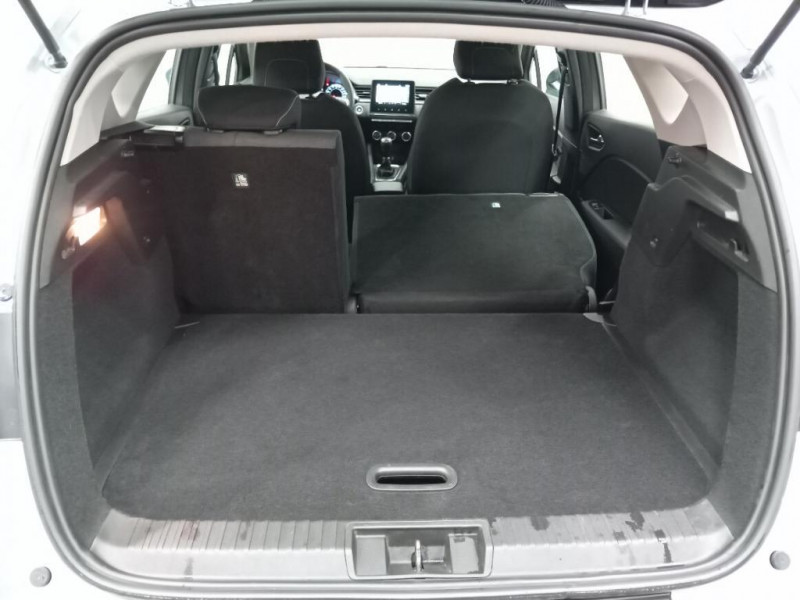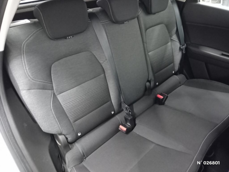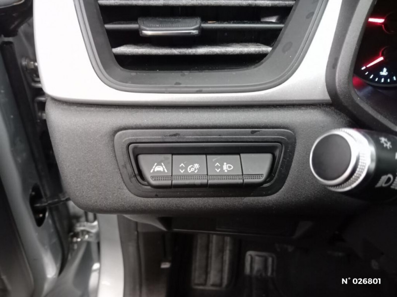 Aide au freinage actif d'urgence avec détection piétons (AEBS City + Inter Urbain + Piéton) / Eclairage AV et AR Full LED Pure Vision / Tableau de bord avec écran numérique 4,2'' et compteurs analogiques / Condamnation centralisée des portes avec télécommande et condamnation des portes en roulant / Kit de gonflage et de réparation des pneumatiques / Alerte oubli des ceintures de sécurité aux 5 places / Alerte distance de sécurité - Information dans tableau de bord / Enjoliveurs 17'' Nymphea / Feux AR LED avec signature en forme de "C" / Harmonie foncé / Sellerie Tissu Noir / Gris avec rayures / Appel d'Urgence Renault / Système ISOFIX (i-Size) aux places latérales AR et passager AV / Ceinture centrale arrière 3 points / Peinture mono-ton / Peinture opaque / Indicateur de changement de vitesse / Console centrale de rangement avec accoudoir / Répétiteurs latéraux de changement de direction / EASY LINK avec écran 7" et navigation