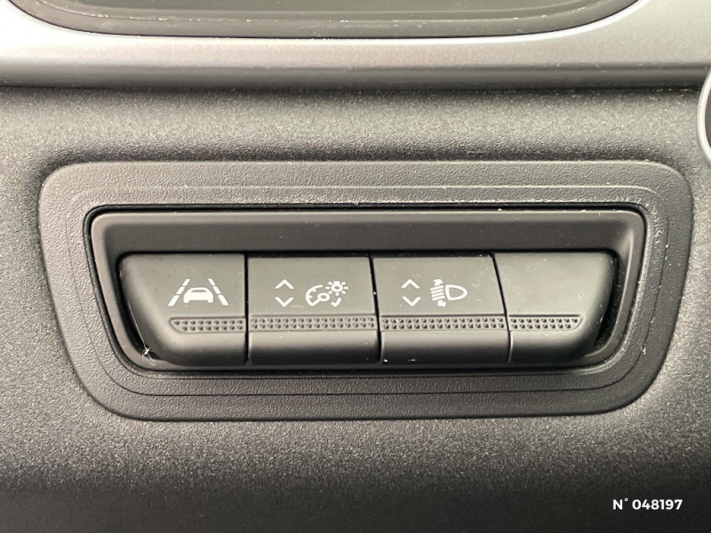 Console centrale de rangement avec accoudoir / Répétiteurs latéraux de changement de direction / Aide au freinage actif d'urgence avec détection piétons (AEBS City + Inter Urbain + Piéton) / EASY LINK avec écran 7" et navigation / Eclairage AV et AR Full LED Pure Vision / Tableau de bord avec écran numérique 4,2'' et compteurs analogiques / Condamnation centralisée des portes avec télécommande et condamnation des portes en roulant / Kit de gonflage et de réparation des pneumatiques / Alerte oubli des ceintures de sécurité aux 5 places / Alerte distance de sécurité - Information dans tableau de bord / Enjoliveurs 17'' Nymphea / Feux AR LED avec signature en forme de "C" / Harmonie foncé / Sellerie Tissu Noir / Gris avec rayures / Appel d'Urgence Renault / Système ISOFIX (i-Size) aux places latérales AR et passager AV / Ceinture centrale arrière 3 points / Peinture mono-ton / Peinture opaque / Indicateur de changement de vitesse