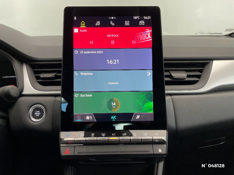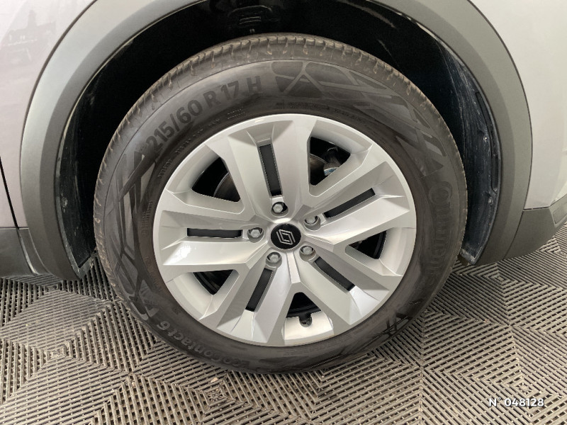 Ceinture centrale AR 3 points / Peinture mono-ton / Indicateur de changement de vitesse / Hayon manuel / Poignées de portes ton caisse / Console centrale de rangement avec accoudoir / Répétiteurs latéraux de changement de direction / Harmonie beige / Condamnation centralisée des portes avec télécommande et condamnation des portes en roulant / Kit de gonflage et de réparation des pneumatiques / Alerte oubli des ceintures de sécurité aux 5 places / Alerte distance de sécurité - Information dans tableau de bord / Feux AR LED avec signature en forme de "C" / Appel d'Urgence Renault / Système ISOFIX (i-Size) aux places latérales AR et passager AV / Antenne requin / Eclairage AV et AR Full LED Pure Vision / Coques de rétroviseurs noir/teinte caisse / Sans pontets AR / Enjoliveurs 17'' Nymphea / Volant en tissus / Sans chargeur à induction / Alerte détection de fatigue / Liseuses LED / Badges noir brillant / OpenR link 10,4'' access display audio avec tableau de bord avec écran numérique et personlisable 7" / Alerte sortie de voie / Roues tôlées 17" / Contrôle de la traction (TCS) / Boîte de vitesse automatique 4 rapports
