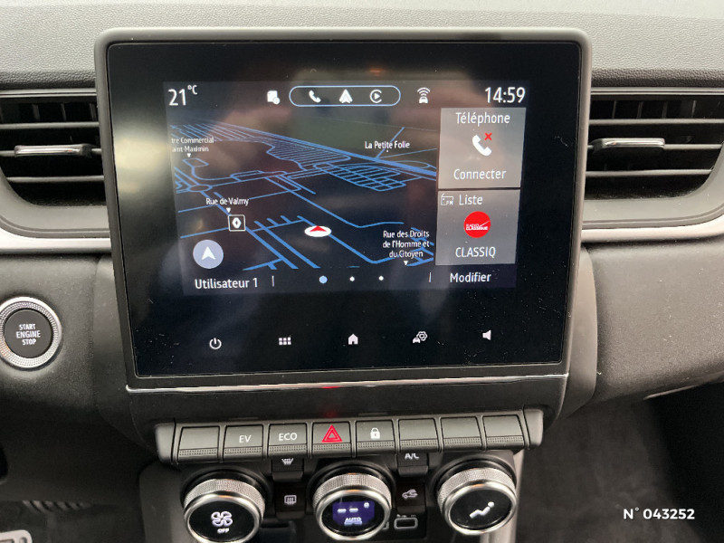 Indicateur de changement de vitesse / Poignées de portes ton caisse / Console centrale de rangement avec accoudoir / Répétiteurs latéraux de changement de direction / Commutation automatique des feux de route/croisement / Harmonie beige / Eclairage AV et AR Full LED Pure Vision / Tableau de bord avec écran numérique et personnalisable 7" / Ceinture centrale arrière 3 points / Navigation / Appel d'Urgence Renault / Système ISOFIX (i-Size) aux places latérales AR et passager AV / Freinage actif d'urgence avec détection piétons et cyclistes (AEBS City + Inter Urbain+ Piéton) / Roue alliage 17" / Badging E-Tech Gold / Feux AR 3D / Volant en tissus / Sans chargeur à induction / Classe energetique 1 / EASY LINK avec écran 7" avec réplication smartphone sans fil (compatible android auto et Apple CarPlay) / Condamnation centralisée des portes avec télécommande et condamnation des portes en roulant / Kit de gonflage et de réparation des pneumatiques / Alerte oubli des ceintures de sécurité aux 5 places / Alerte distance de sécurité - Information dans tableau de bord