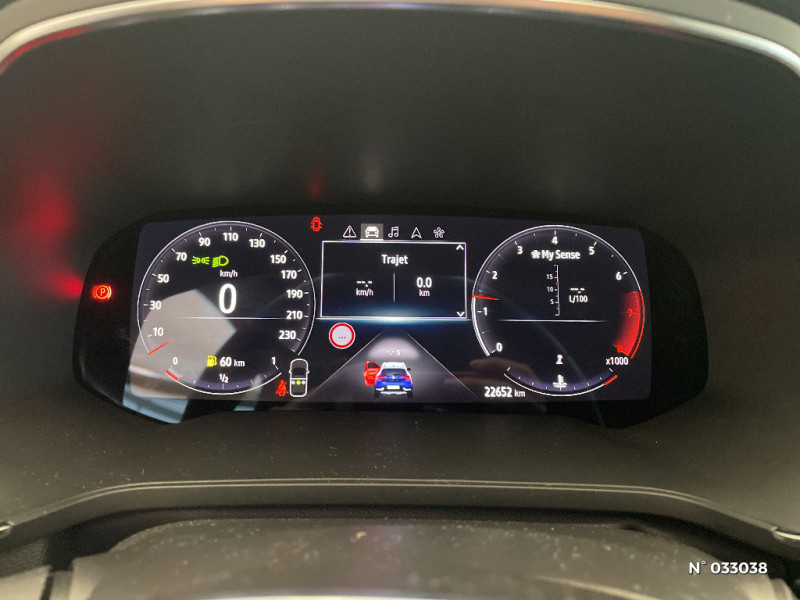Sellerie tissu avec jonc gris / Rétroviseur intérieur électrochrome / Ceinture centrale arrière 3 points / Indicateur de changement de vitesse / Renault Multi-Sense (choix de modes de conduite) / Poignées de portes ton caisse / Console centrale de rangement avec accoudoir / Compartimentage de coffre / Répétiteurs latéraux de changement de direction / Commutation automatique des feux de route/croisement / Harmonie beige / Eclairage AV et AR Full LED Pure Vision / Tableau de bord avec écran numérique et personnalisable 7" / Condamnation centralisée des portes avec télécommande et condamnation des portes en roulant / Kit de gonflage et de réparation des pneumatiques / Alerte oubli des ceintures de sécurité aux 5 places / Alerte distance de sécurité - Information dans tableau de bord / Jantes alliage 18'' Pasadena diamantées gris erbé / Sellerie TEP / tissu avec jonc gris / Navigation / Appel d'Urgence Renault / Système ISOFIX (i-Size) aux places latérales AR et passager AV / Antenne requin / Pneus à faible résistance au roulement / Freinage actif d'urgence avec détection piétons et cyclistes (AEBS City + Inter Urbain+ Piéton) / Alternateur renforcé / Frein de parking électrique avec fonction Auto-Hold / Feux AR 3D / Volant en tissus / Sans chargeur à induction / Classe energetique 1 / EASY LINK avec écran 7" avec réplication smartphone sans fil (compatible android auto et Apple CarPlay)