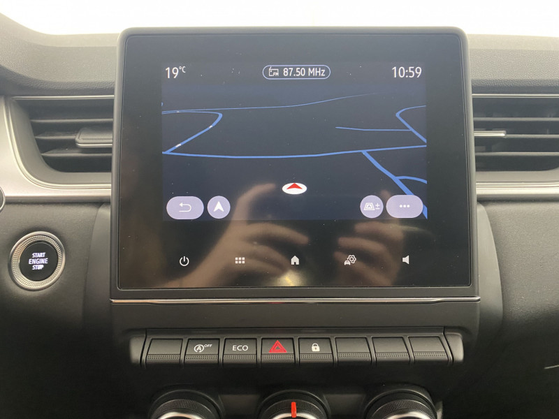 Aide au freinage actif d'urgence avec détection piétons (AEBS City + Inter Urbain + Piéton): / EASY LINK avec écran 7" et navigation: / Eclairage AV et AR Full LED Pure Vision: / Feux AR LED avec signature en forme de "C": / Alerte distance de sécurité - Information dans tableau de bord: / Alerte oubli des ceintures de sécurité aux 5 places: / Appel d'Urgence Renault: / Ceinture centrale AR 3 points: / Condamnation centralisée des portes avec télécommande et condamnation des portes en roulant: / Console centrale de rangement avec accoudoir: / Enjoliveurs 17'' Nymphea: / Harmonie intérieure foncée: / Indicateur de changement de vitesse: / Kit de gonflage et de réparation des pneumatiques: / Répétiteurs latéraux de changement de direction: / Système ISOFIX (i-Size) aux places latérales AR et passager AV: / Tableau de bord avec écran numérique 4,2'' et compteurs analogiques: / Volant TEP: / Sellerie Tissu Noir / Gris avec rayures: / / Véhicules équivalents: 2008 - C4 Cactus - Juke