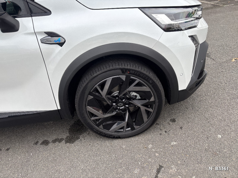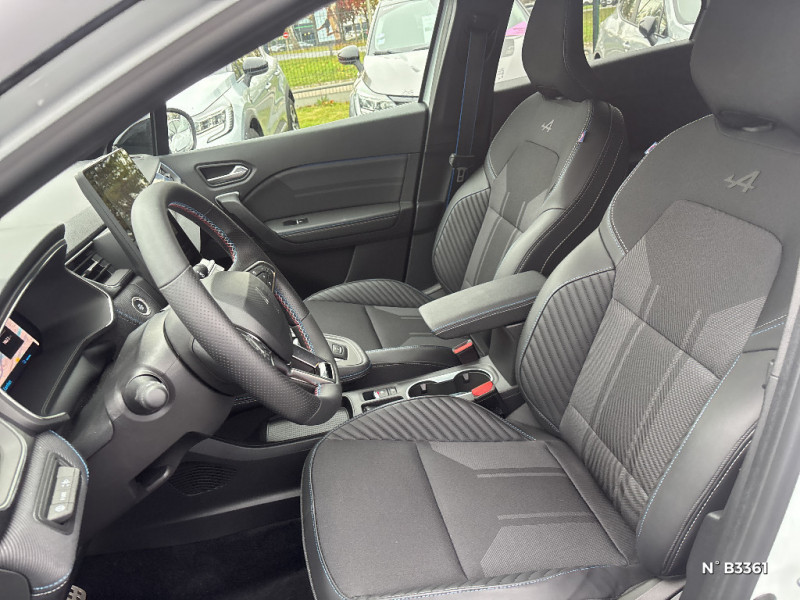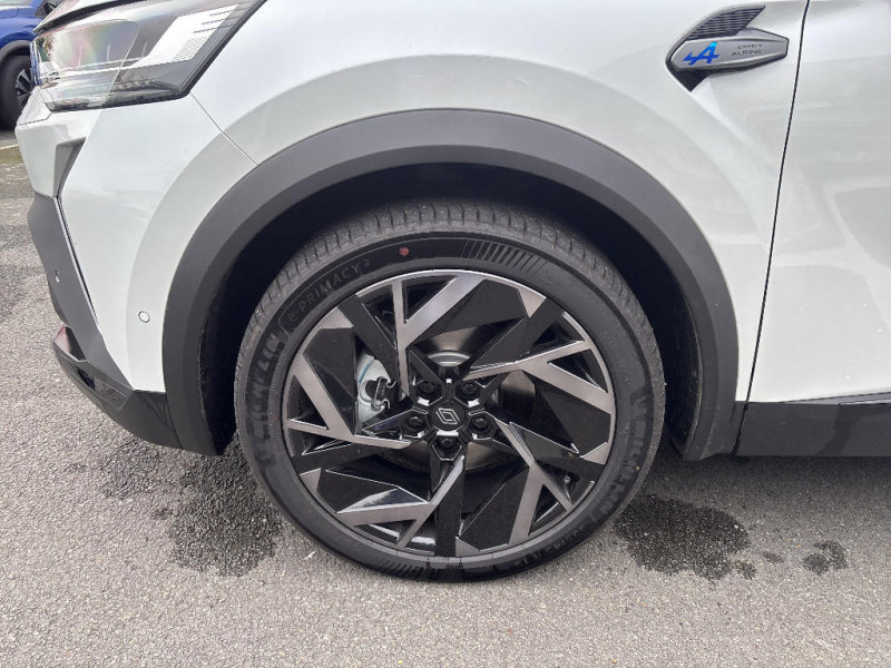 Volant textile enduit grainé / Condamnation centralisée des portes avec télécommande et condamnation des portes en roulant / Console flottante et e-shifter / Contrôle de la traction (TCS) / Aide au parking AV/AR et latéral / Alerte détection de fatigue / Alerte distance de sécurité - Information dans tableau de bord / Alerte oubli des ceintures de sécurité aux 5 places / Alerte sortie de voie / Alerte sortie sécurisée des occupants / Antenne requin / Appel d'Urgence Renault / Avertisseur d'angle mort et détection AR avec correction / Avertisseur de sortie de stationnement en marche AR / Boîte de vitesse hybride multimode 6 rapports / Cartographie Standard / Ceinture centrale AR 3 points / Coques de rétroviseurs noir/teinte caisse / Design esprit Alpine extérieur / Design esprit Alpine intérieur / Eclairage AV et AR Full LED Pure Vision / Feux AR LED avec signature en forme de ''C'' et animation 3D / Frein de parking électrique avec fonction Auto-Hold / Harmonie esprit Alpine / Hayon AR manuel / Indicateur de changement de vitesse / Jantes Aluminium 19'' / Kit de gonflage et de réparation des pneumatiques / Maintenance connectée, incluse pendant 8 ans / Miroirs de courtoisie rétroéclairés / Mise à jour système (via firmware over the air FOTA), inclus pendant 5 ans / OpenR link 10,4"avec navigation et services Google et tableau de bord numérique 10" / Pack connected driving, inclus pendant 5 ans / Pack contrôle à distance (via l'application My Renault), inclus pendant 5 ans / Plancher de coffre mobile / Poignées de portes ton caisse / Renault Multi-sense / Répétiteurs latéraux de changement de direction / Rétroviseur intérieur électrochrome Frameless / Sellerie Esprit Alpine / Système ISOFIX (i-Size) aux places latérales AR et passager AV / Système multimédia openR link 10.4" avecGoogle intégré / Volant chauffant