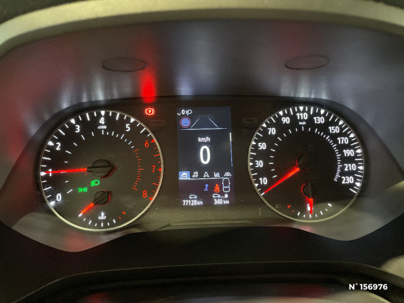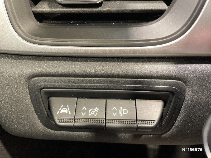 Système ISOFIX (i-Size) aux places latérales AR et passager AV / Ceinture centrale arrière 3 points / Peinture mono-ton / Indicateur de changement de vitesse / Poignées de portes ton caisse / Console centrale de rangement avec accoudoir / Répétiteurs latéraux de changement de direction / Aide au freinage actif d'urgence avec détection piétons (AEBS City + Inter Urbain + Piéton) / EASY LINK avec écran 7" et navigation / Eclairage AV et AR Full LED Pure Vision / Tableau de bord avec écran numérique 4,2'' et compteurs analogiques / Condamnation centralisée des portes avec télécommande et condamnation des portes en roulant / Kit de gonflage et de réparation des pneumatiques / Alerte oubli des ceintures de sécurité aux 5 places / Alerte distance de sécurité - Information dans tableau de bord / Enjoliveurs 17'' Nymphea / Feux AR LED avec signature en forme de "C" / Harmonie foncé / Sellerie Tissu Noir / Gris avec rayures / Appel d'Urgence Renault